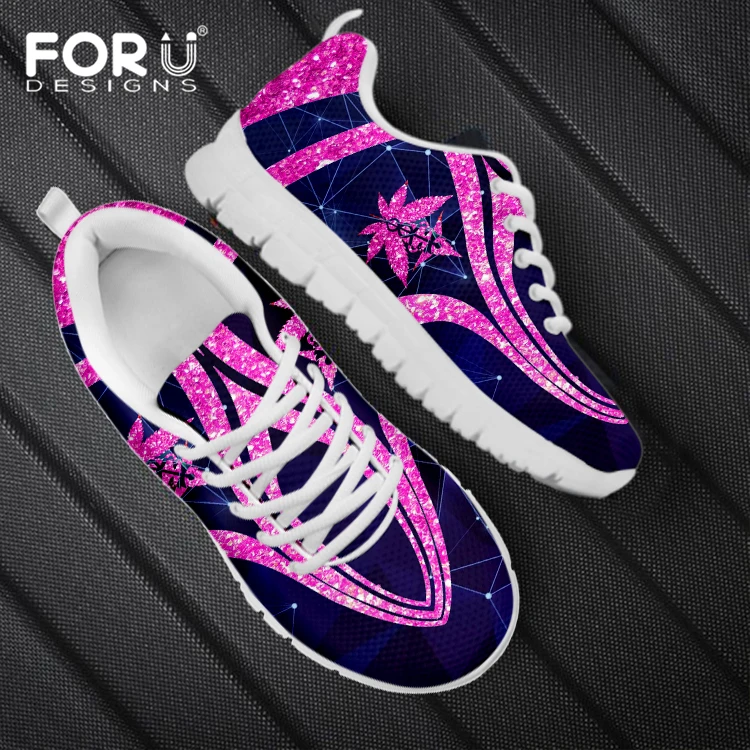 Женские сетчатые кроссовки FORUDESIGNS, Осенние повседневные туфли на плоской подошве с синими блестящими листьями, легкие кроссовки для девочек-подростков