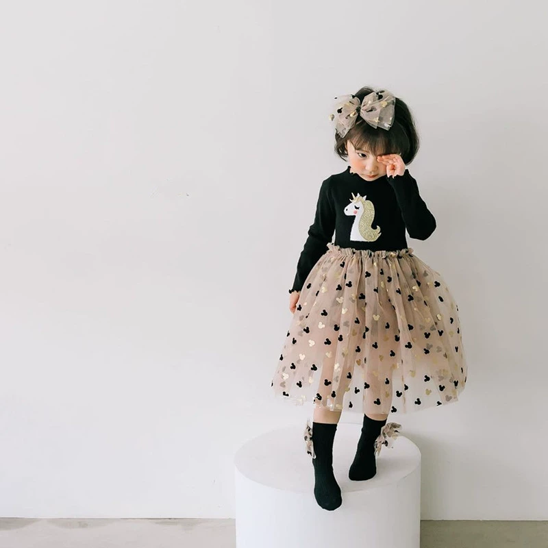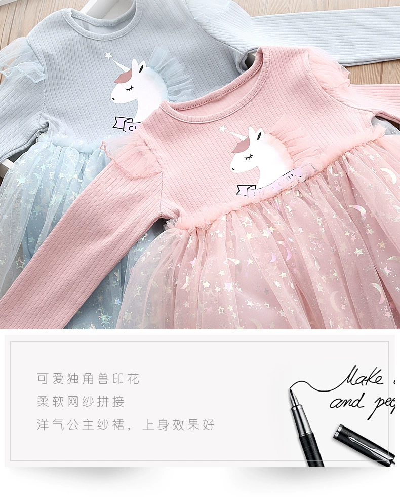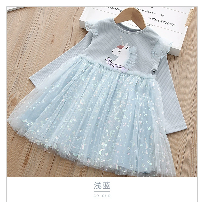 Осеннее платье с длинным рукавом для девочек, Сетчатое платье принц...