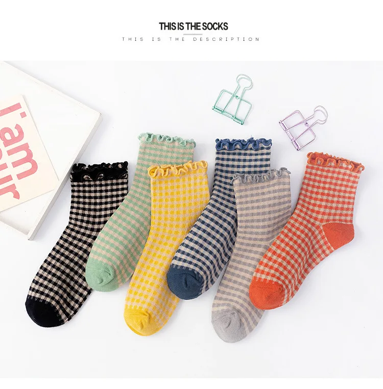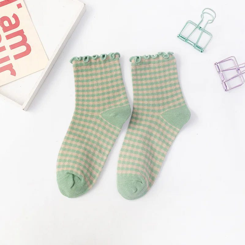 frilly ruffle striped Plaid socks