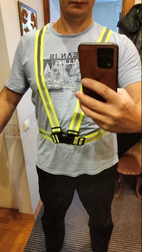 Хорошо заметна в темноте. Один минус размер больше рассчитан на подростка, чем на взрослого. А так хорошо.