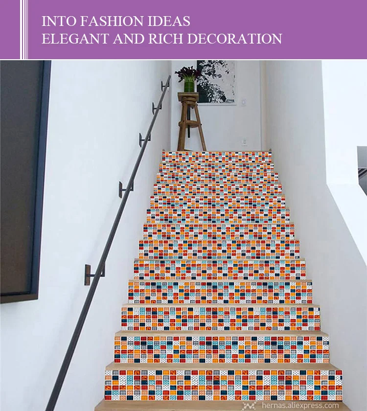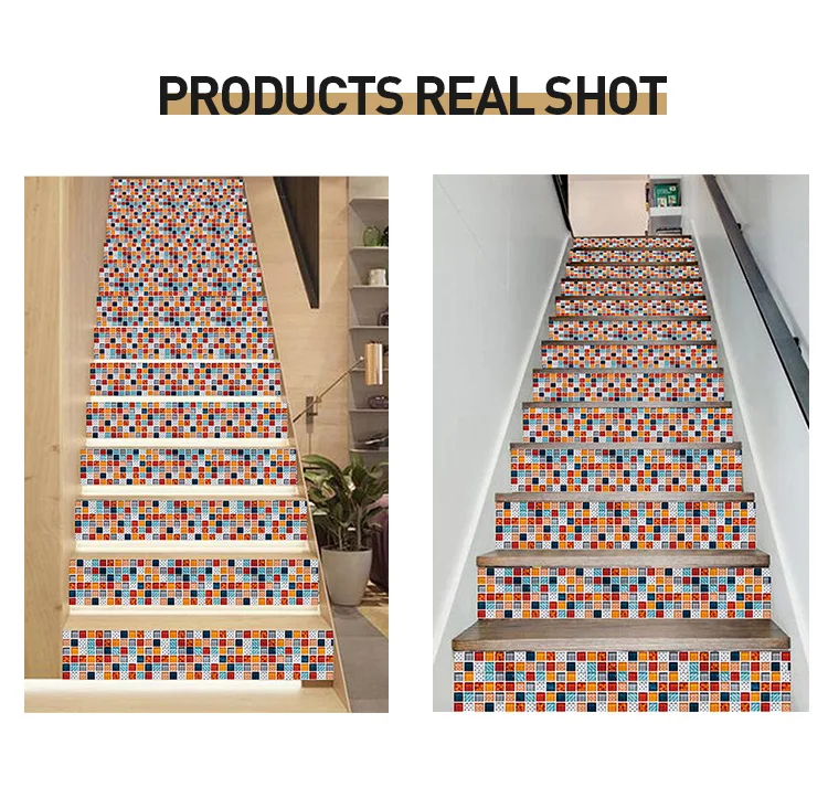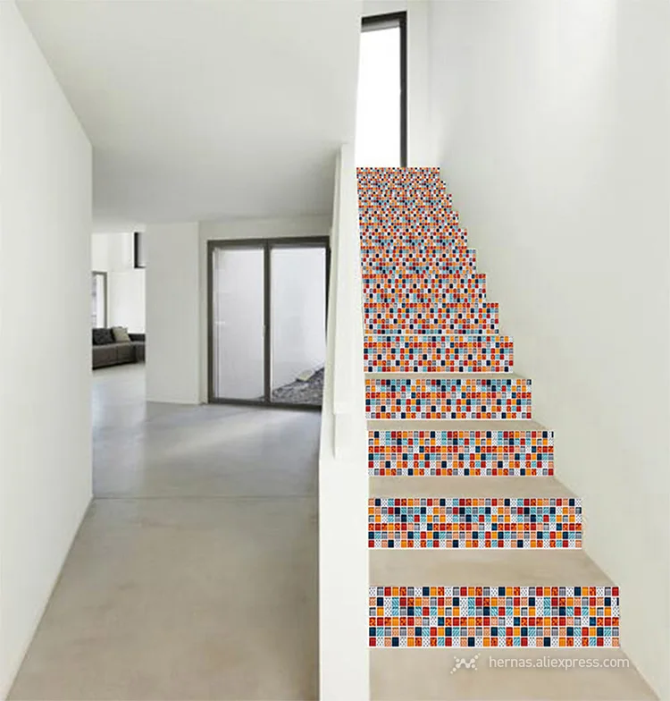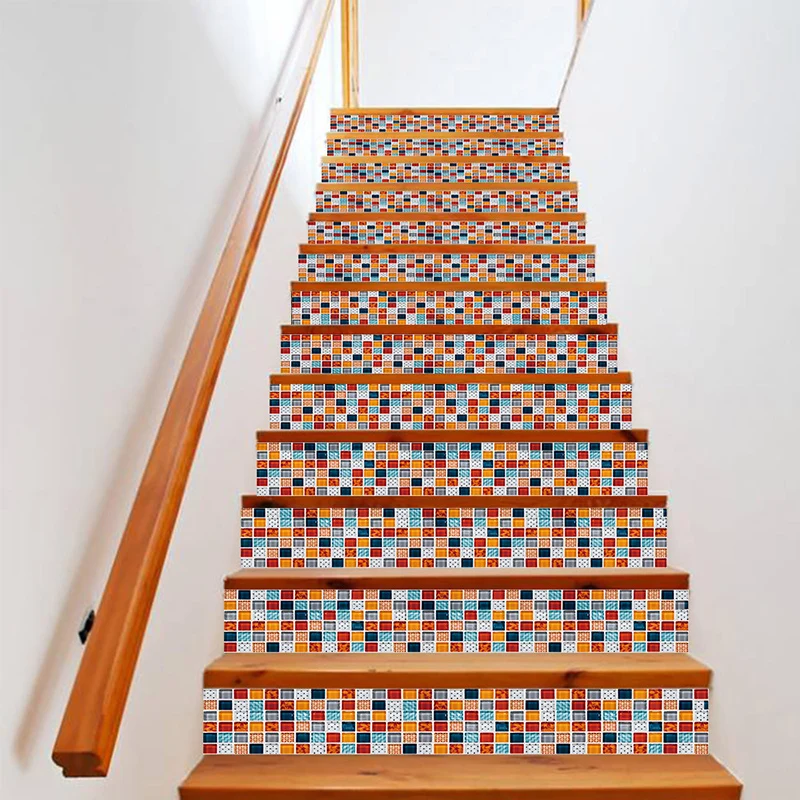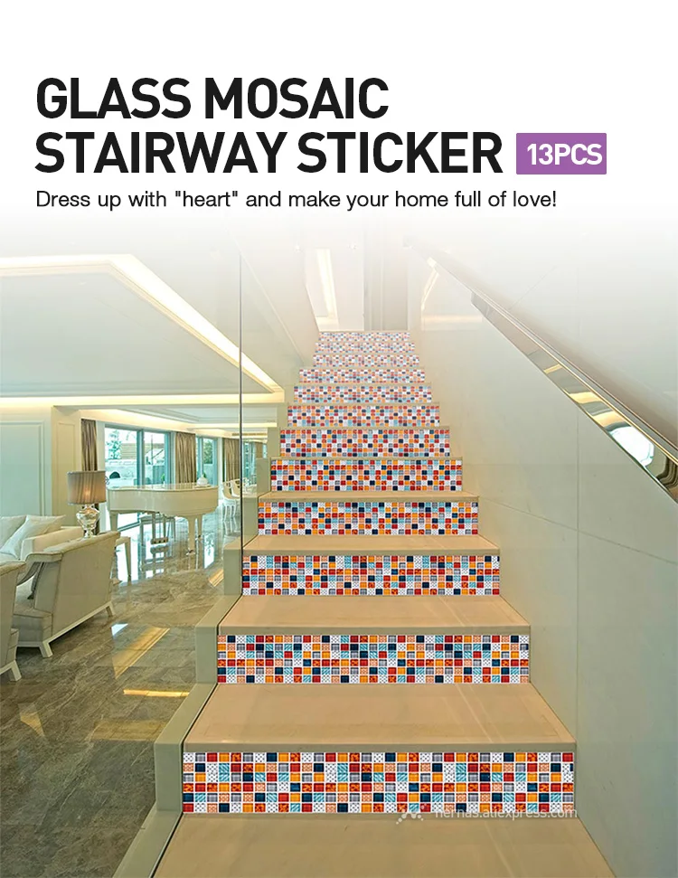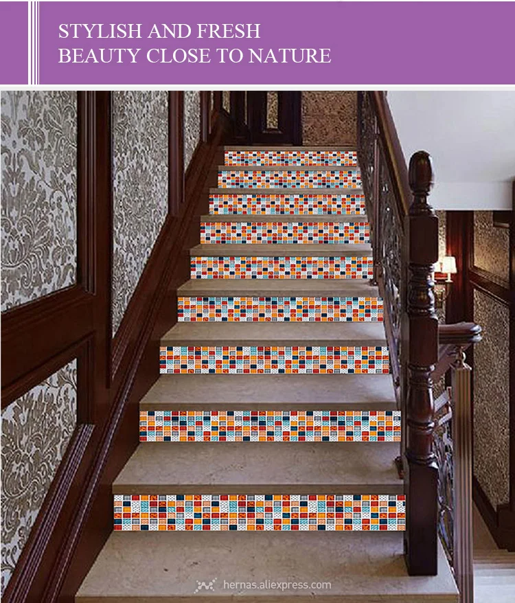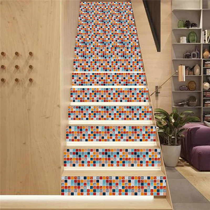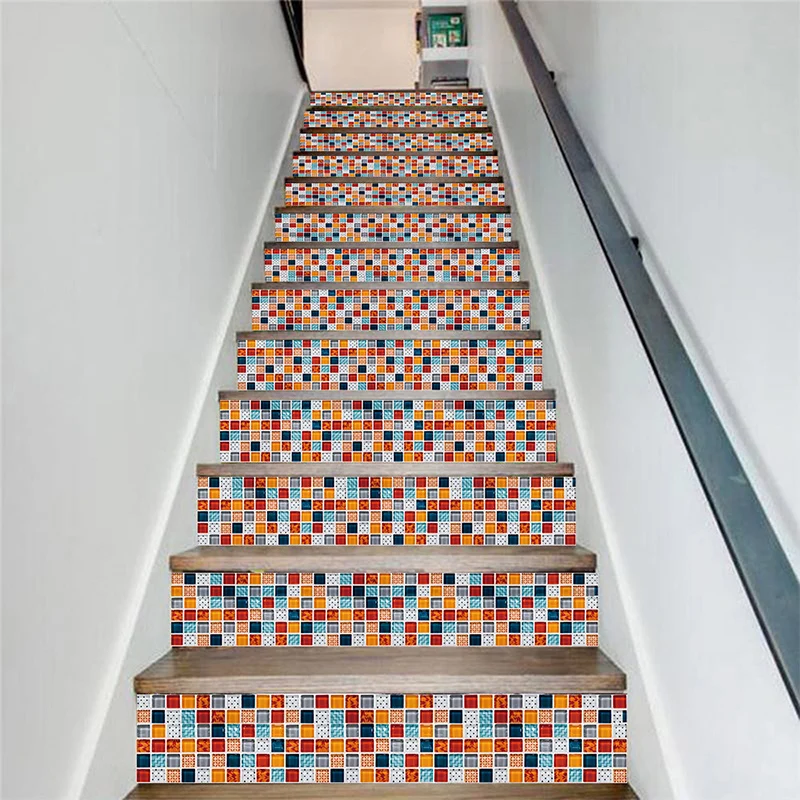 ПВХ обои стеклянная мозаика простые 13 шт. DIY лестницы наклейки, наклейки на ступени наклейки на стену