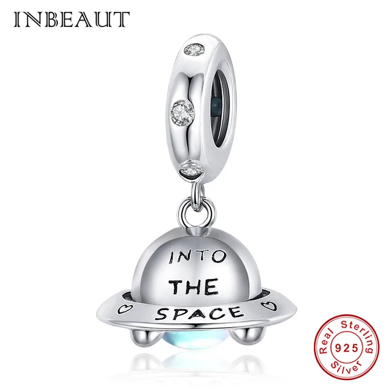 Оригинальный космический корабль бусины с местами путешествий 100% 925 серебро синий самолет земли Шарм fit Пан браслет кулон для женщин, сделай сам, ювелирное изделие