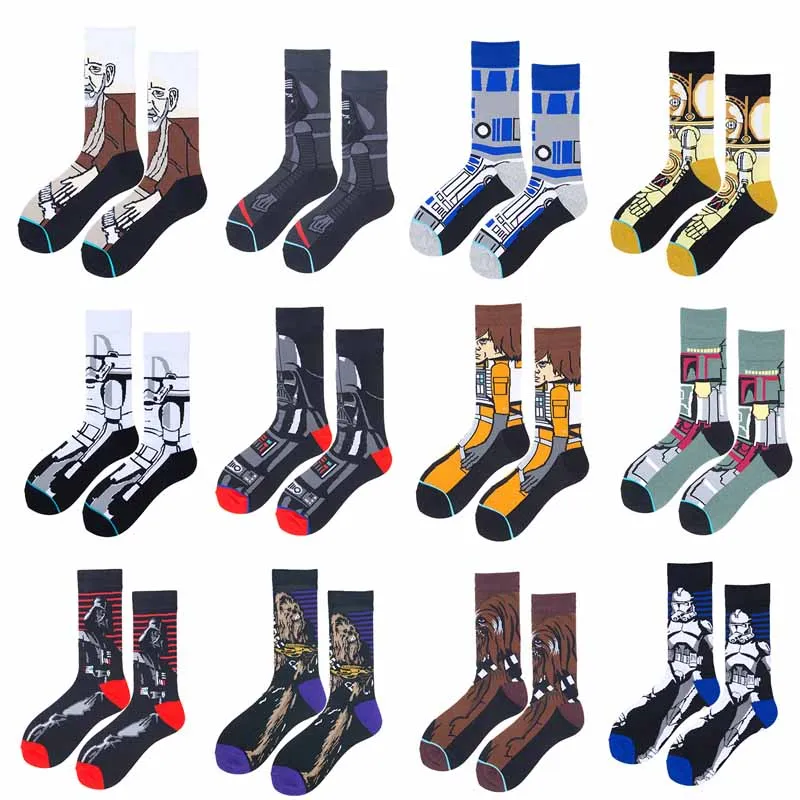 Творческий мода харадзюку, футболки для мужчин и женщин, унисекс, хлопковые носки с принтом Звездные войны, носки R2-D2 косплей носки Вуки рыцаря носки