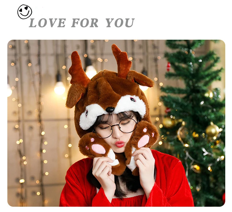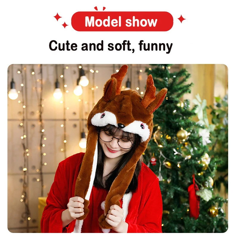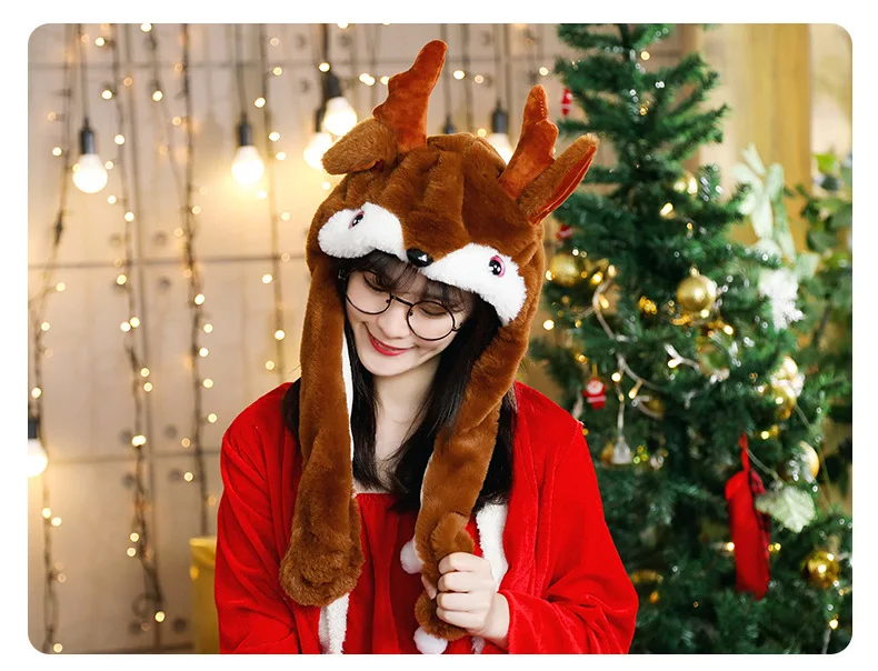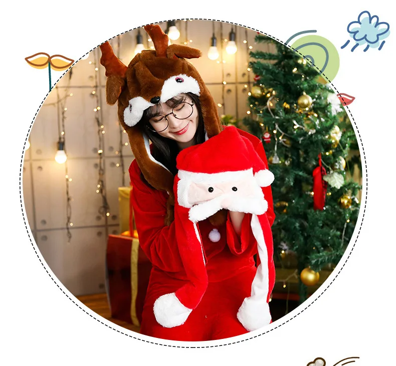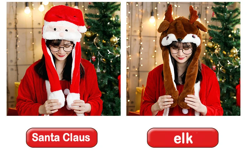 Санта Клаус Airbg шляпа перемещение уши стильная футболка с изображением персонажей видеоигр игрушечная шапка Kawaii Забавный шапка-игрушка для девочек плюшевая игрушка, подарок на день рождения, Рождественский подарок шапка для детей