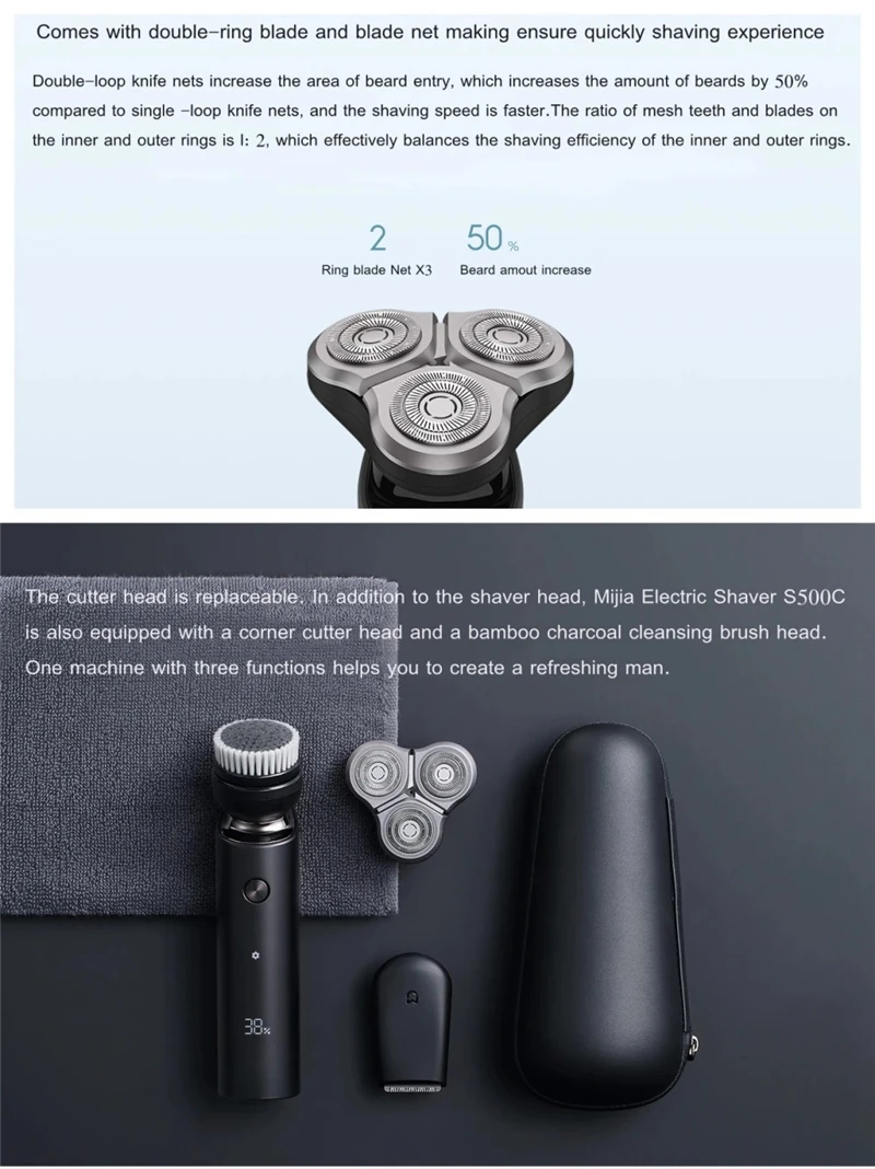 Официальный магазин Xiaomi Mijia S500C 3 в 1 электробритва для мужчин триммер для бороды и волос Type-C IPX7 водонепроницаемый инструмент для бритья бороды