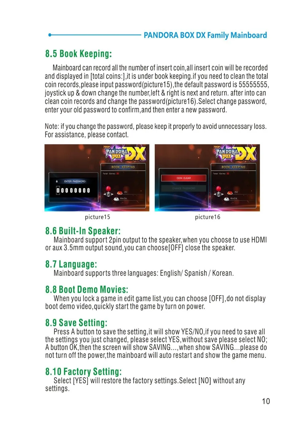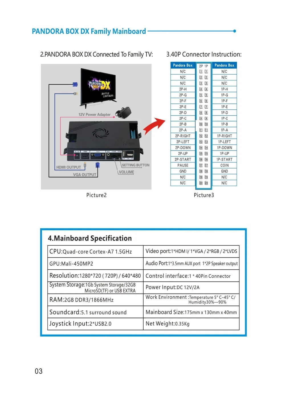 Особенности:♦Игровые файлы уже установлены, нет необходимости в downlaod (можно добавить дополнительные 5000 игр)♦Поддержка 3d игр, 34 3d игры, пользователь может добавить другие)♦Поддержка добавления FBA/MAME/PS1/SFC/SNES/FC.Mega Drive game♦Поддержка 3 P/4P игр (103 шт. 3 p/4p игр)♦Разрешение: 1280*720p/ 640*480p♦Функция паузы: свободный режим и режим монет можно сделать паузу♦Функция сохранения хода игры♦Высокая оценка записи♦Добавить функцию линии сканирования (страница настройки может выбрать, чтобы открыть)♦Languge переключатель: английский/Корейский/испанский♦Интерфейс USB (Используйте u-диск для добавления игр)♦Функция классификации игр♦Функция включения фильма♦Встроенный переключатель динамиков♦Функция непрерывной съемки♦HDMI VGA CGA ouptut (когда HDMI и VGA вставляются одновременно, выход только HDMI signla)♦Кнопка пользовательская функция (suppport для установки последовательности из 8 кнопок, установите любое количество кнопок для сохранения)