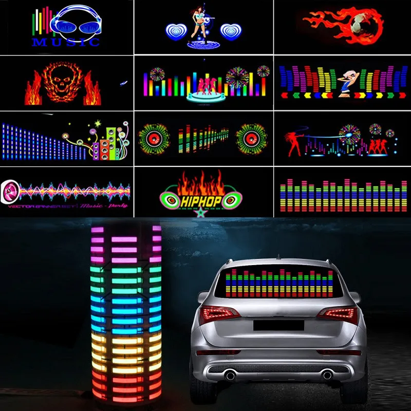 Автомобильный стикер музыкальный ритм светодиодный светильник-вспышка лампа Автомобильный задний лобовое стекло декоративный светильник звуковая активация эквалайзер с коробкой управления