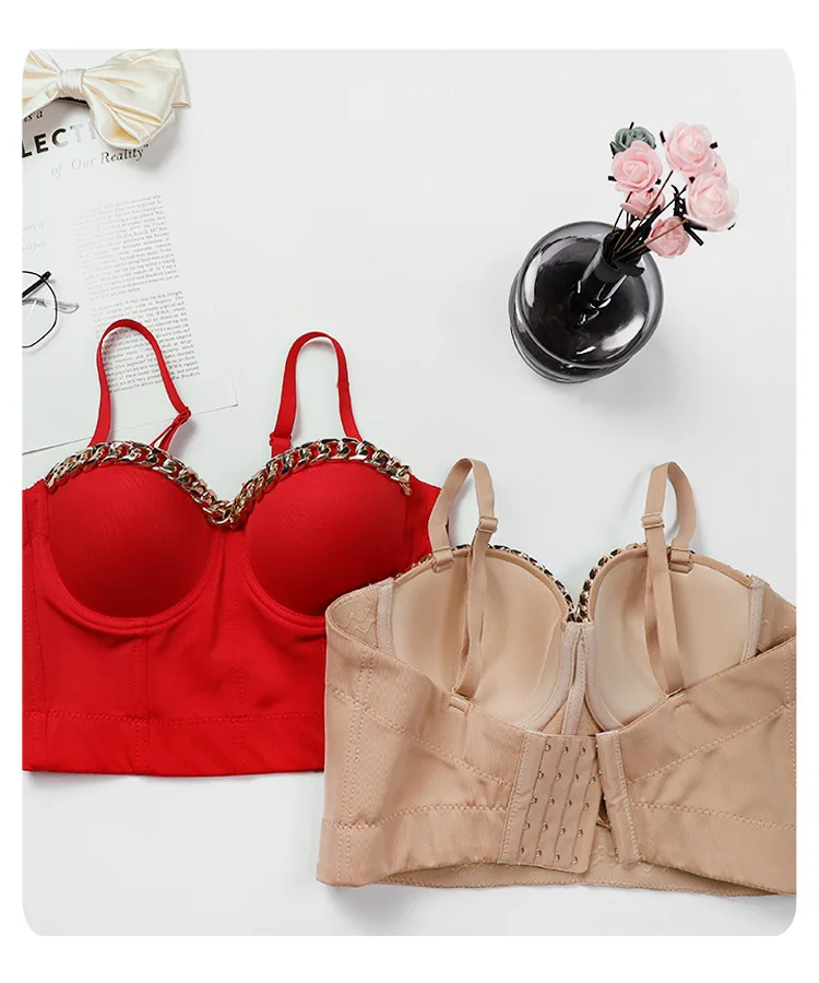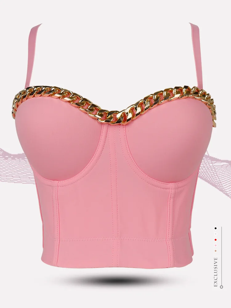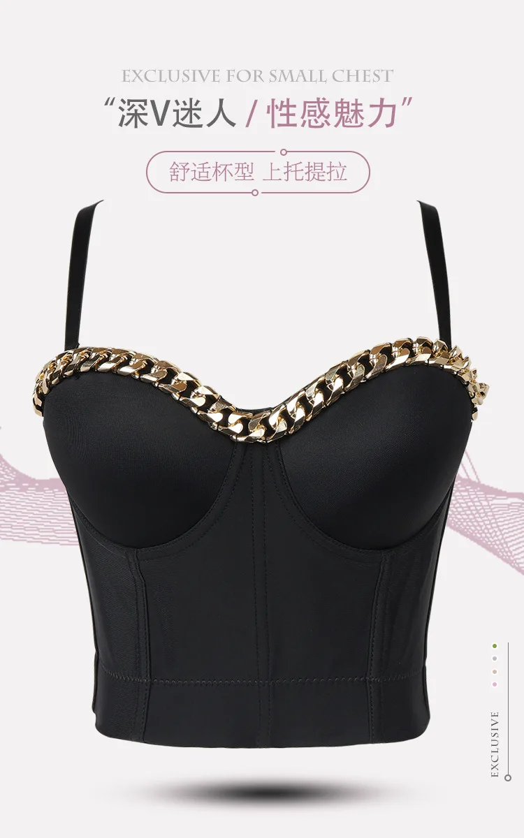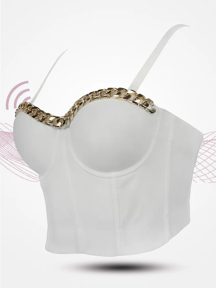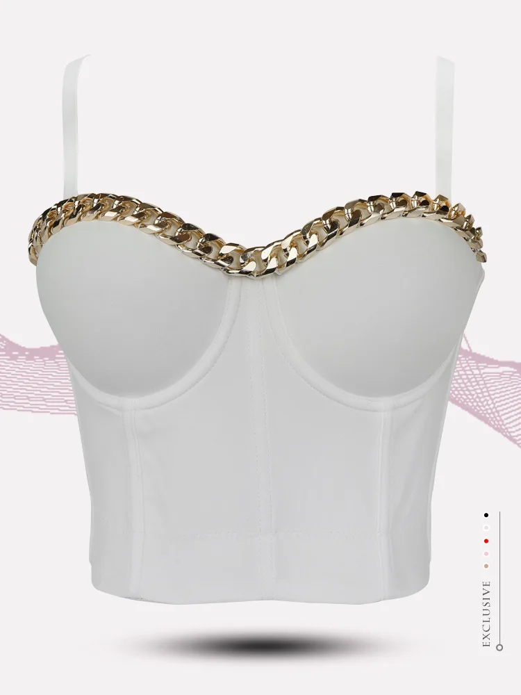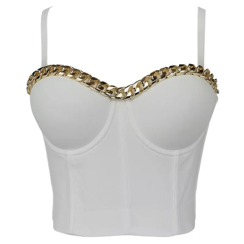 Новинка 2020, Женский Топ, однотонный укороченный топ с золотой цепочкой, бюстье, бюстгальтер, вечерние майки для ночного клуба, женский топ со стальным кольцом