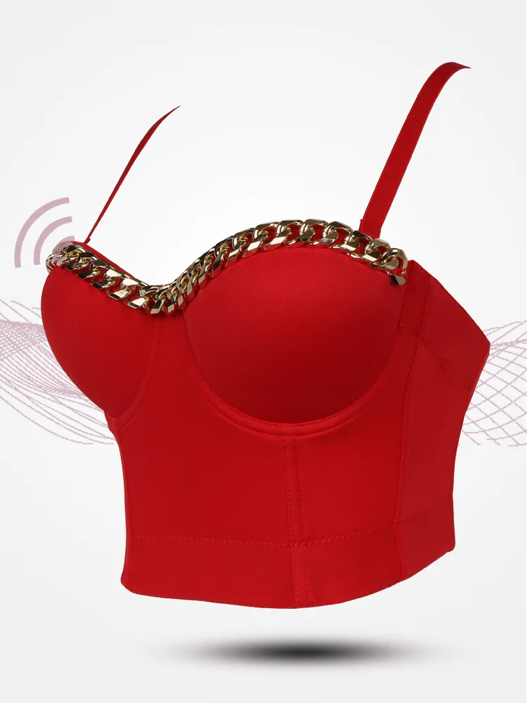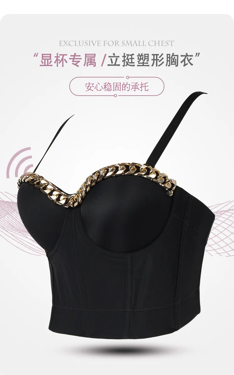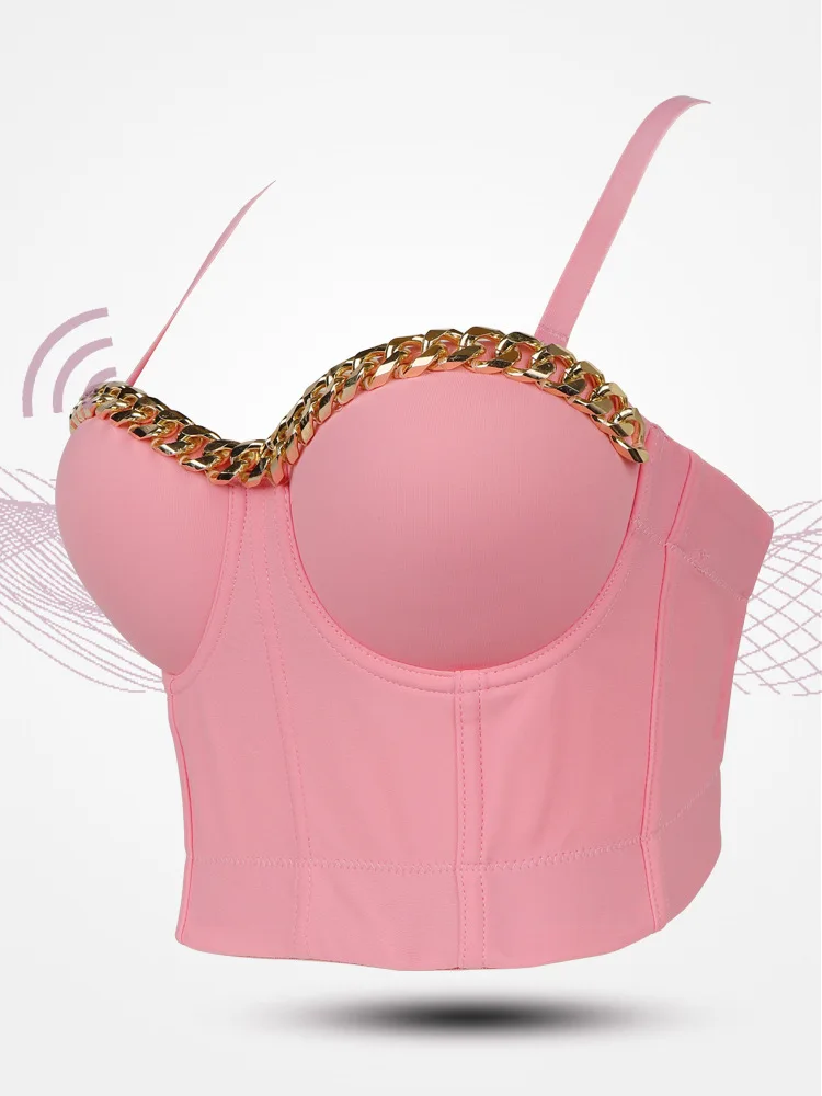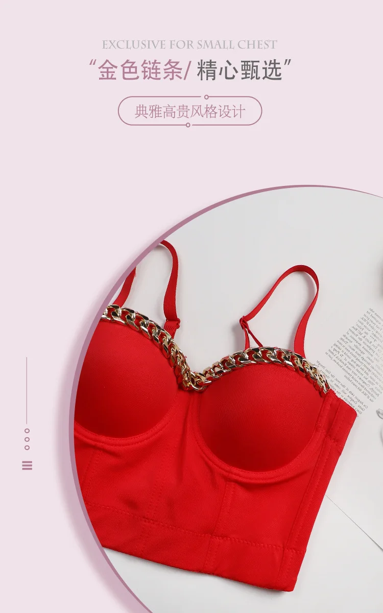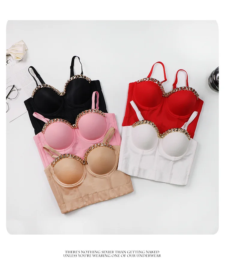 Новинка 2020, Женский Топ, однотонный укороченный топ с золотой цепочкой, бюстье, бюстгальтер, вечерние майки для ночного клуба, женский топ со стальным кольцом