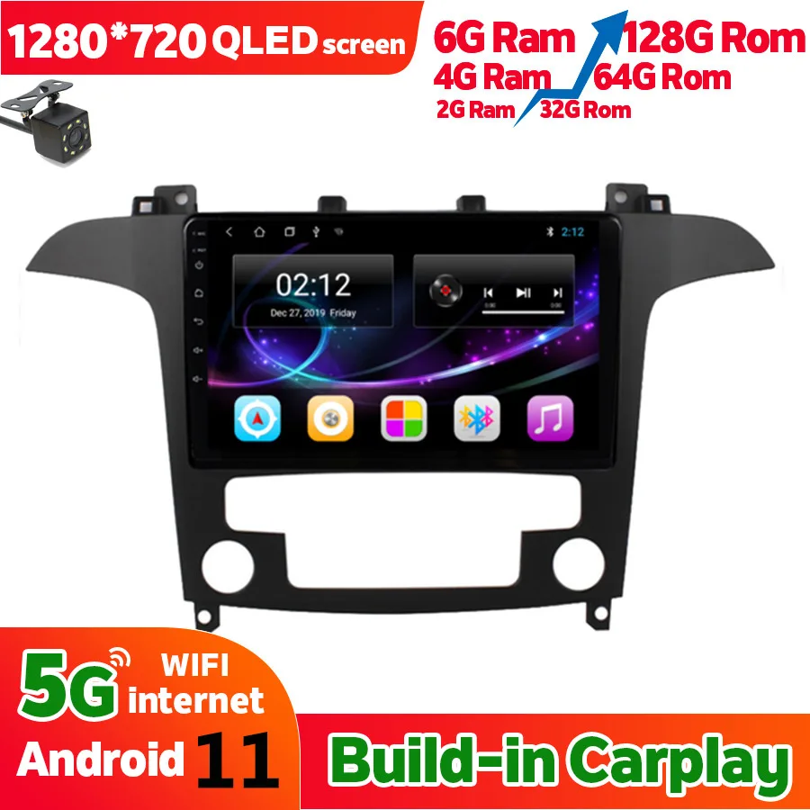 Автомагнитола 6 ГБ ОЗУ 128 Гб ПЗУ для Ford S-Max 2007 GPS-навигация 2008 SMax Android 11 мультимедийный плеер авторадио Bluetooth стерео
