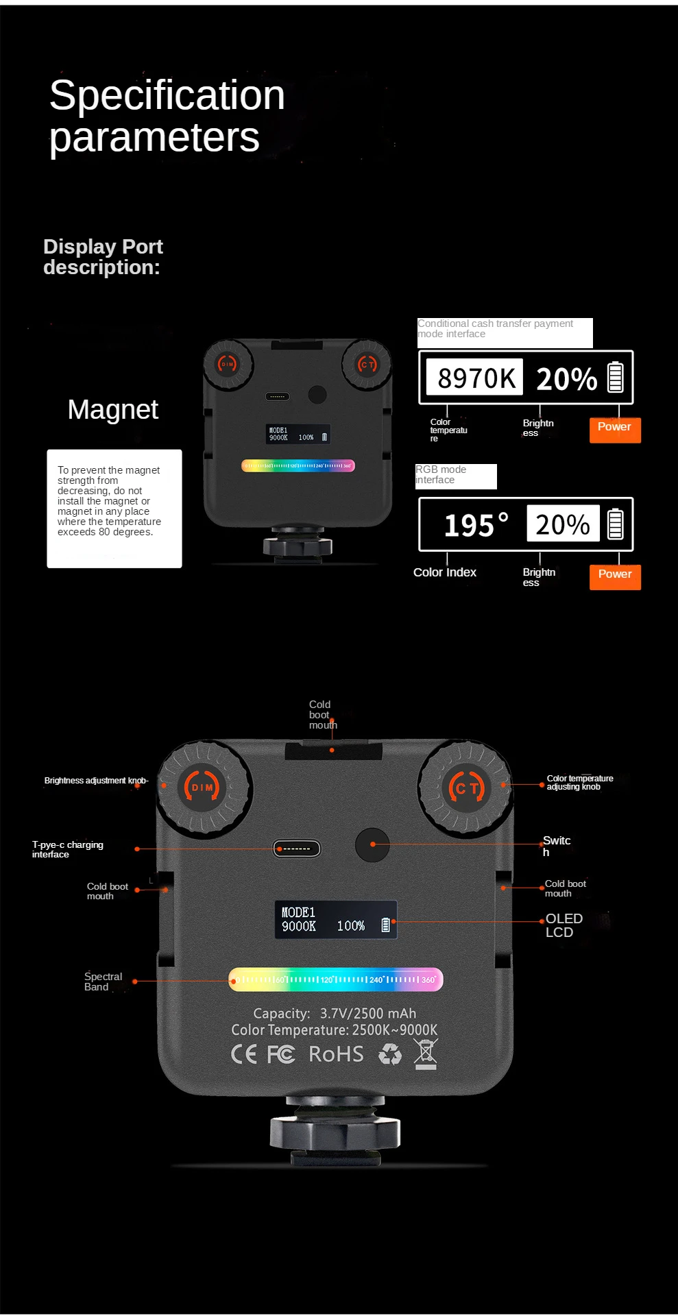64RGB мини светильник лампа для камеры 2500 мАч перезаряжасветодиод...