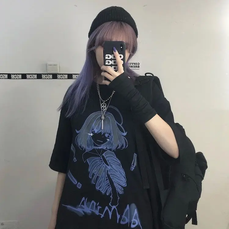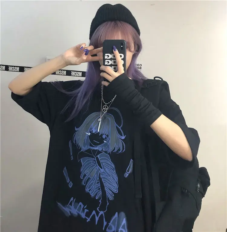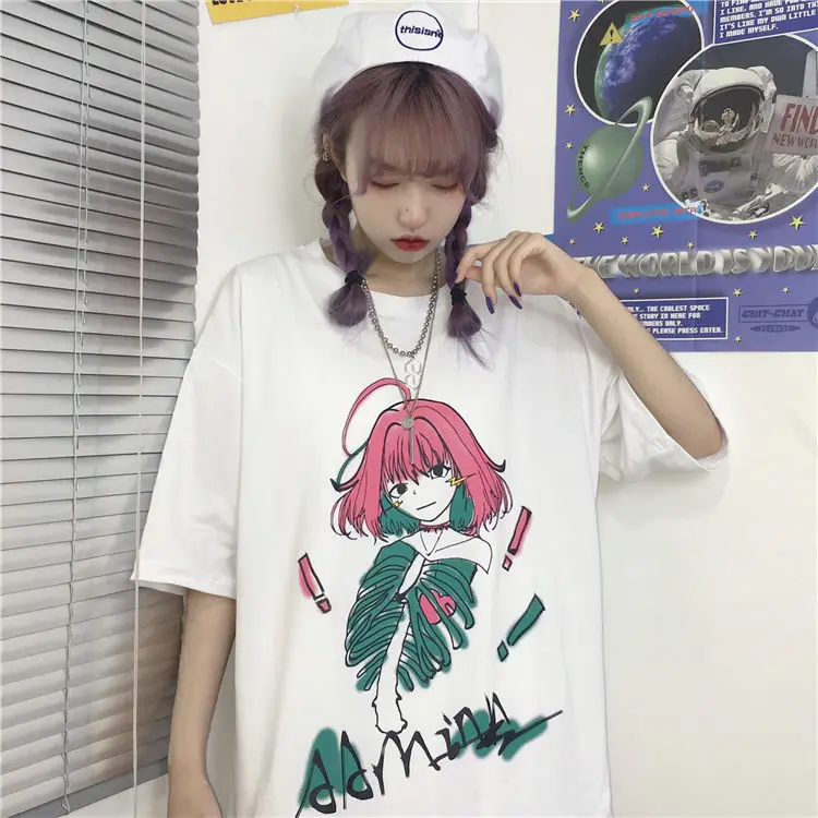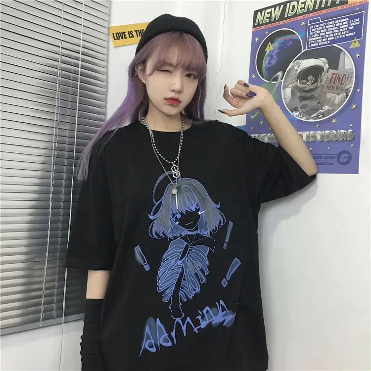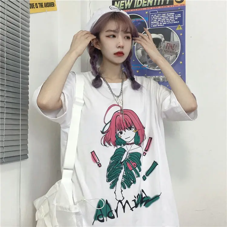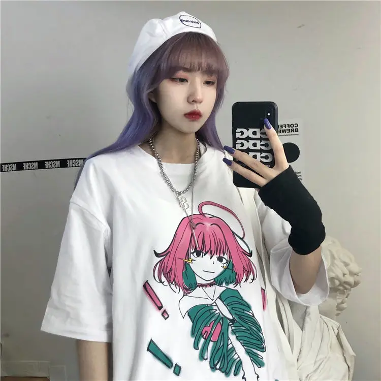 Kawaii милые негабаритных одежда уличная Harajuku женские футболки с рисунком из аниме для молодых девушек; Женские футболки эстетическое поп одежда футболка