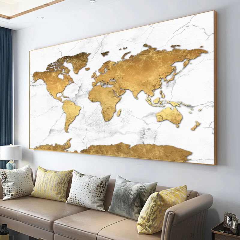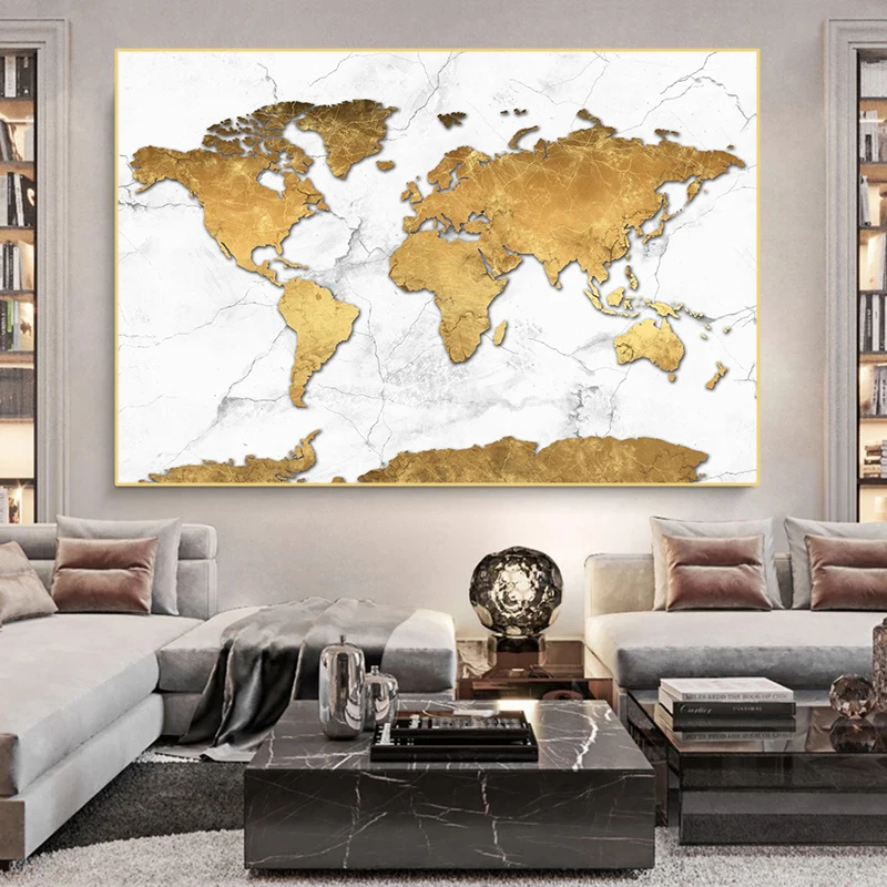Декоративные плакаты и принты с картой мира, настенные картины на холсте, современная картина большого размера для гостиной, домашний декор