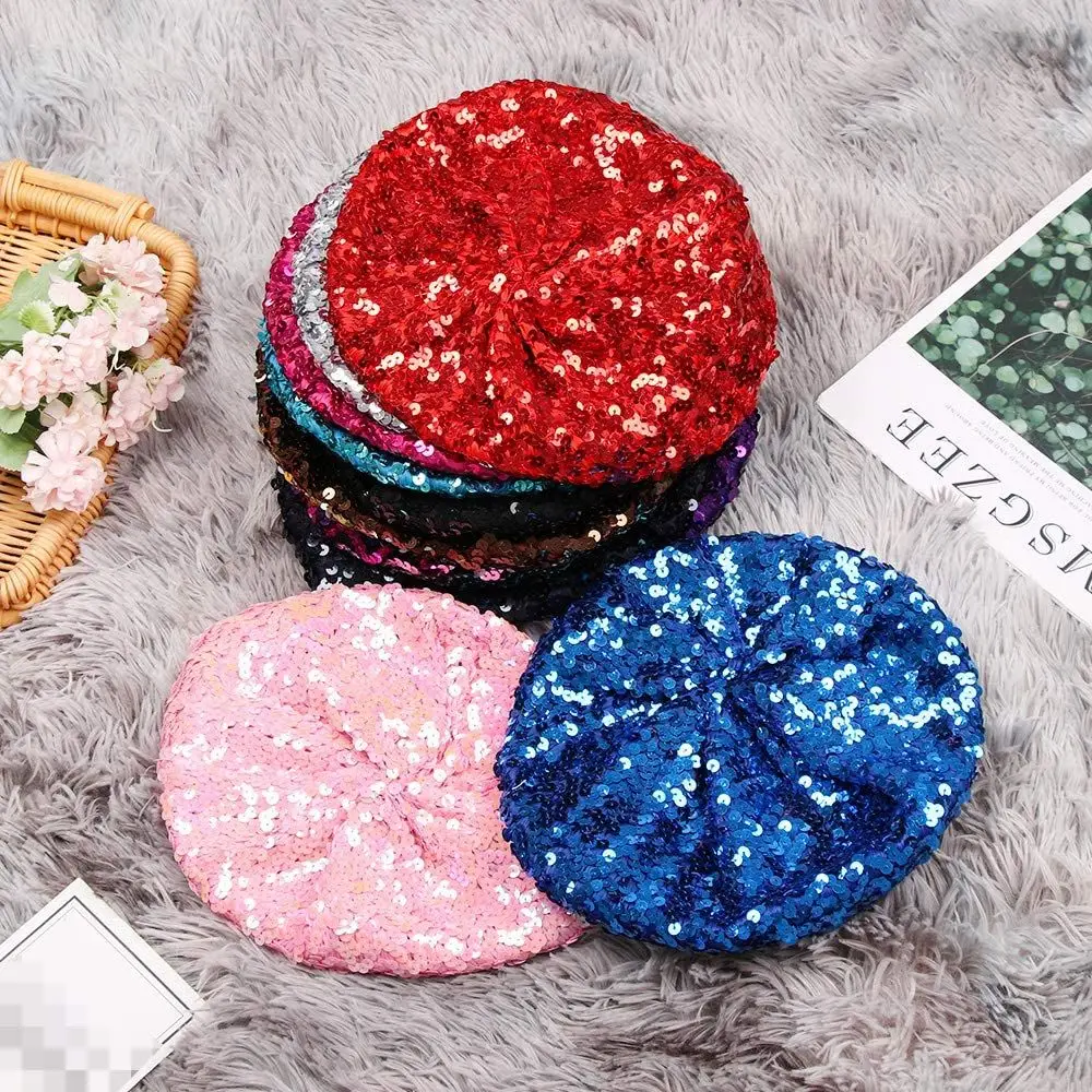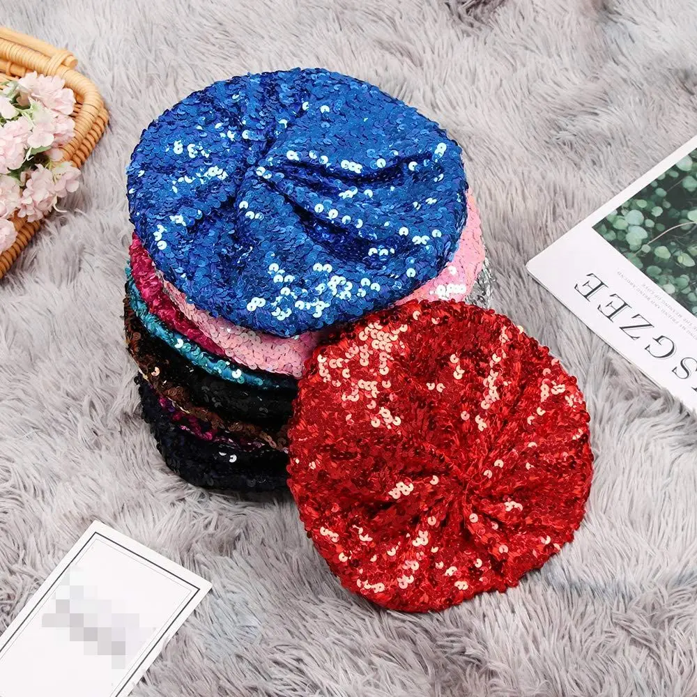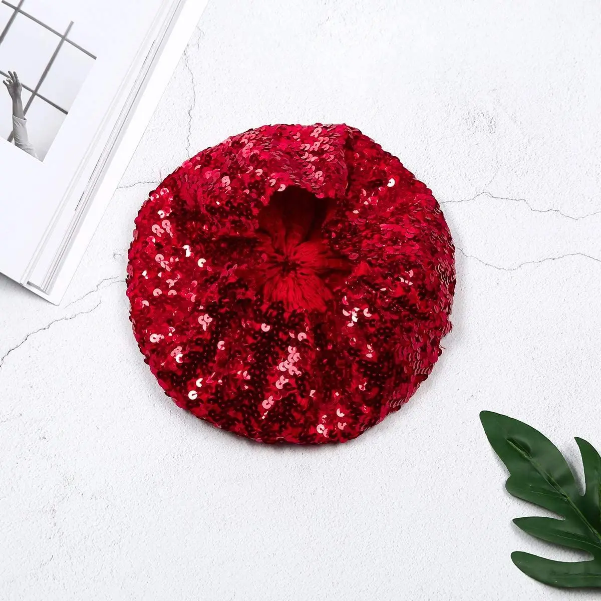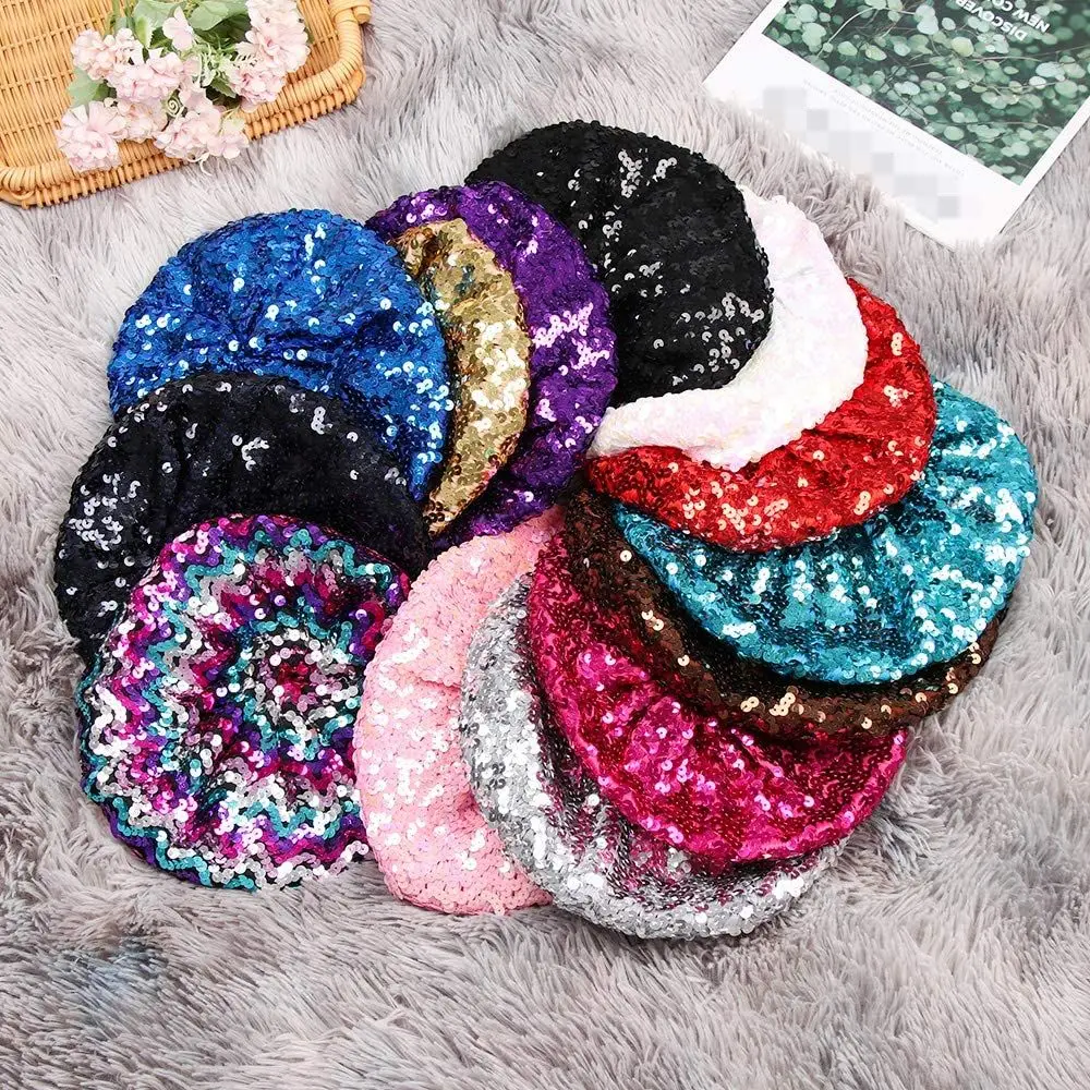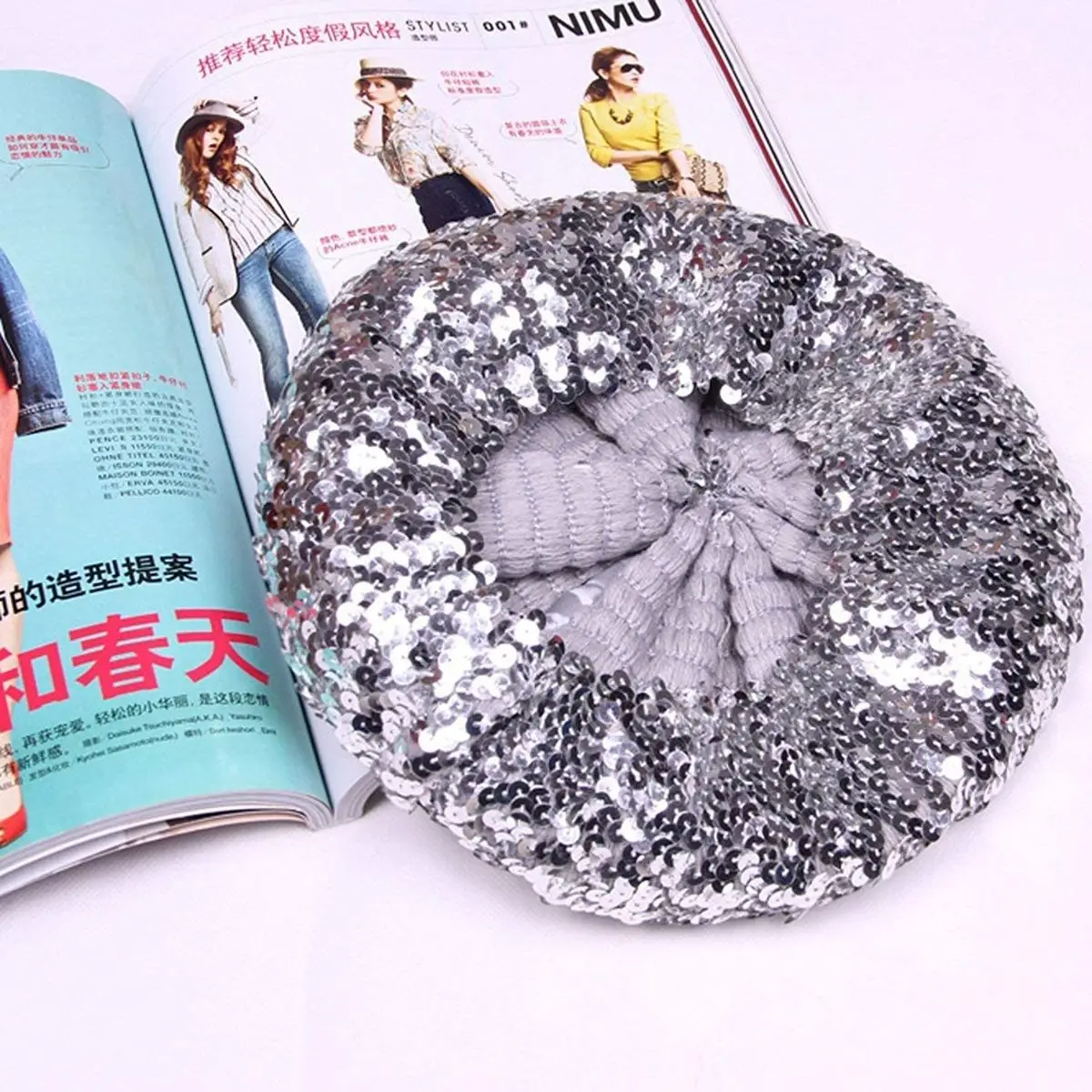 Женская модная Веселая блестящие пайетки мерцание стрейч берет шапка бини