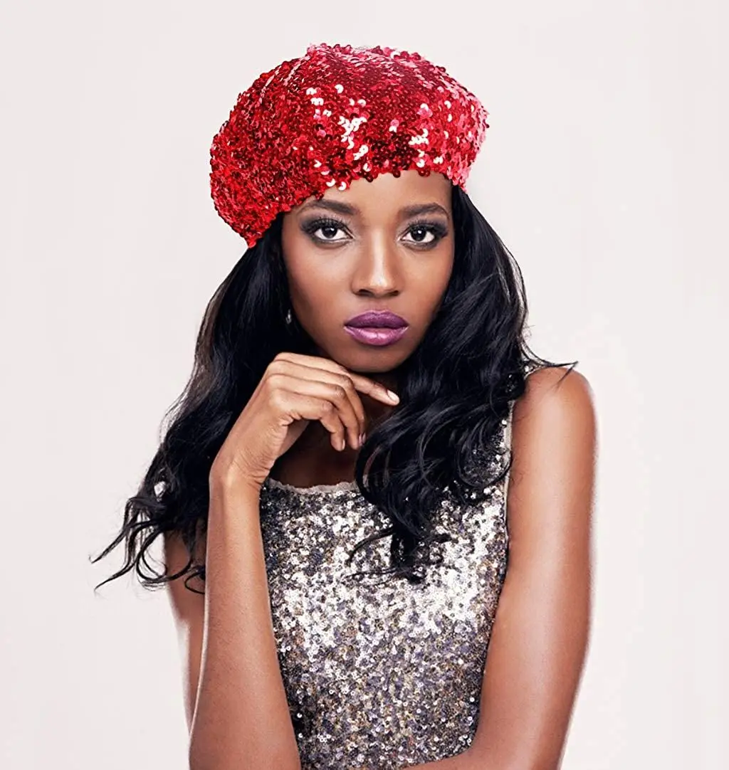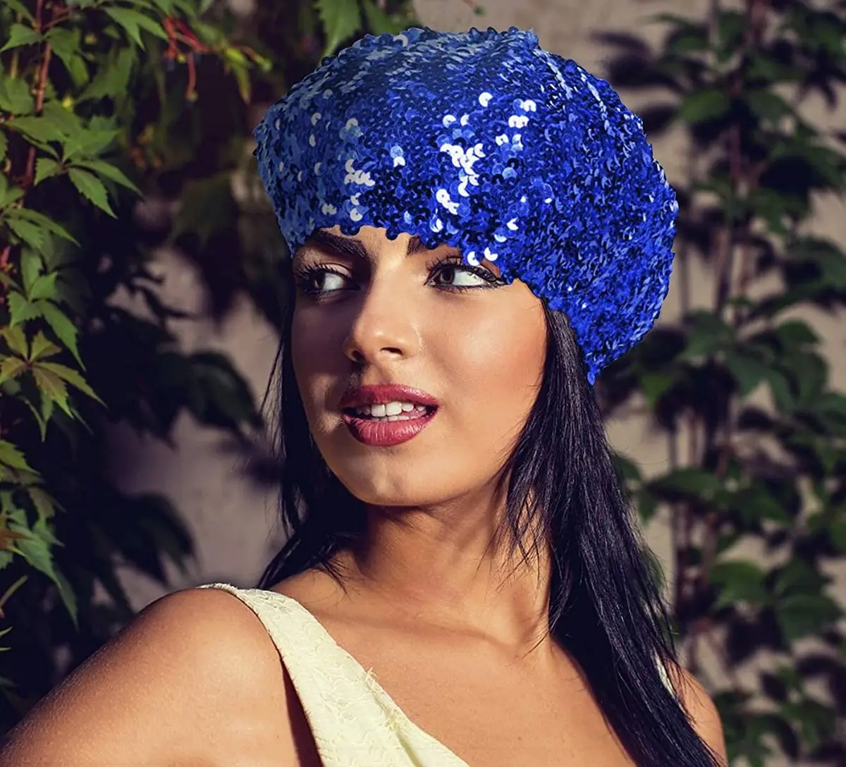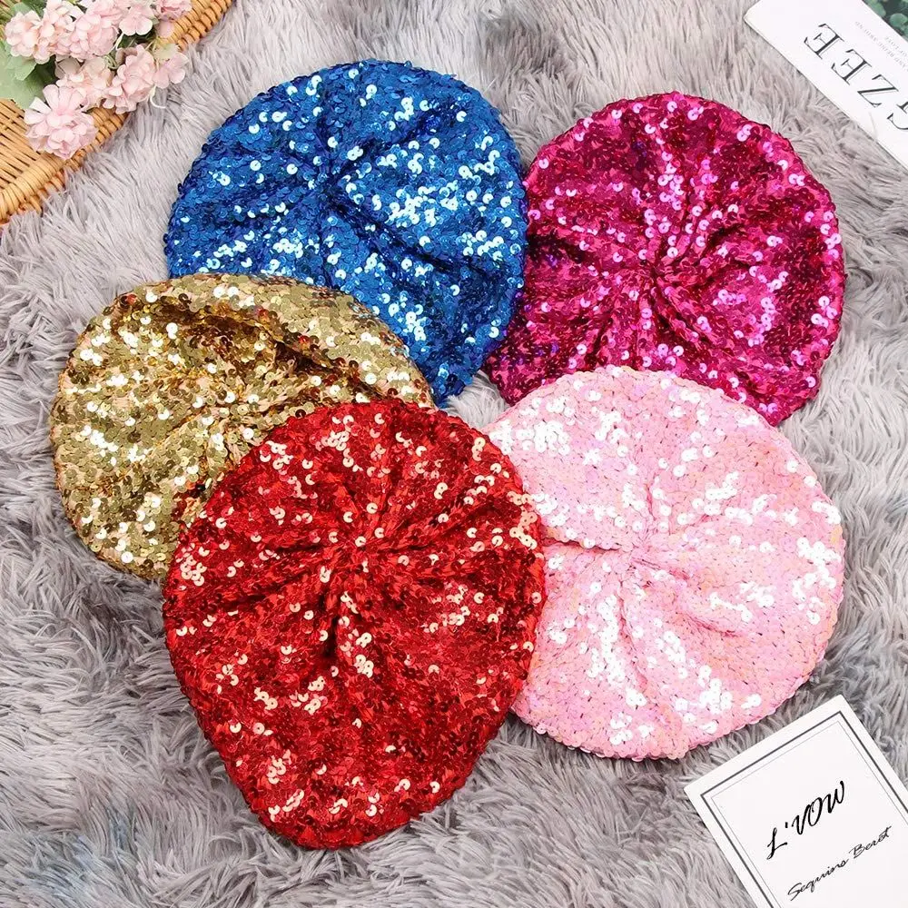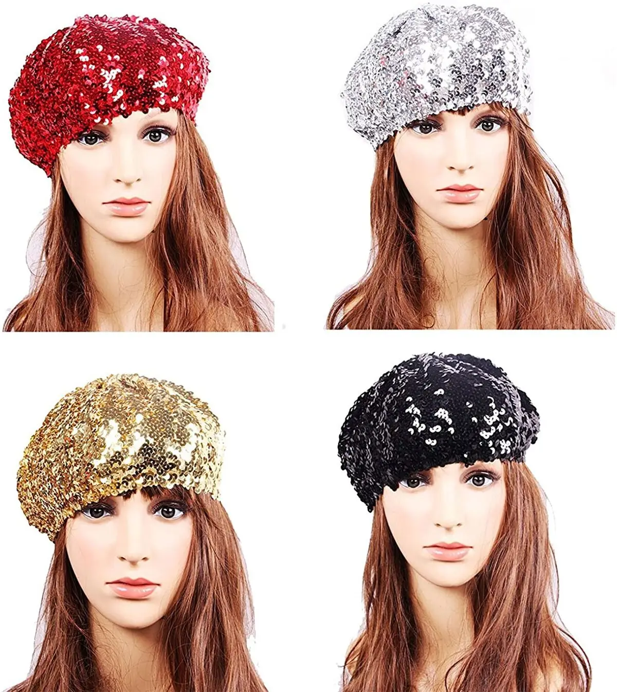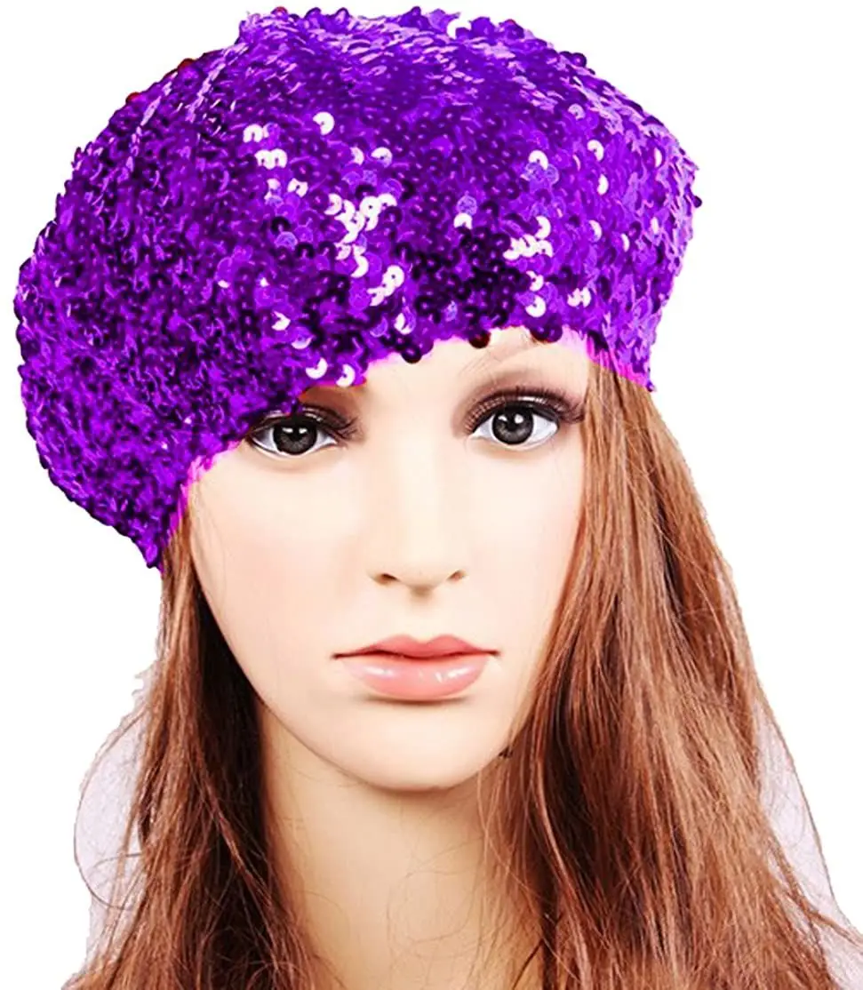 Женская модная Веселая блестящие пайетки мерцание стрейч берет шапка бини