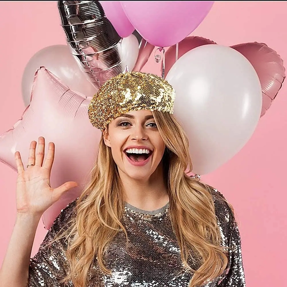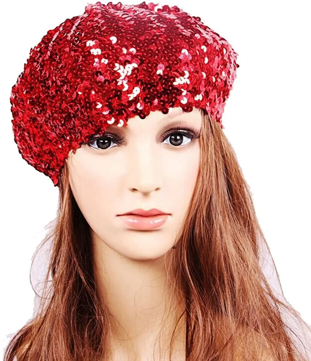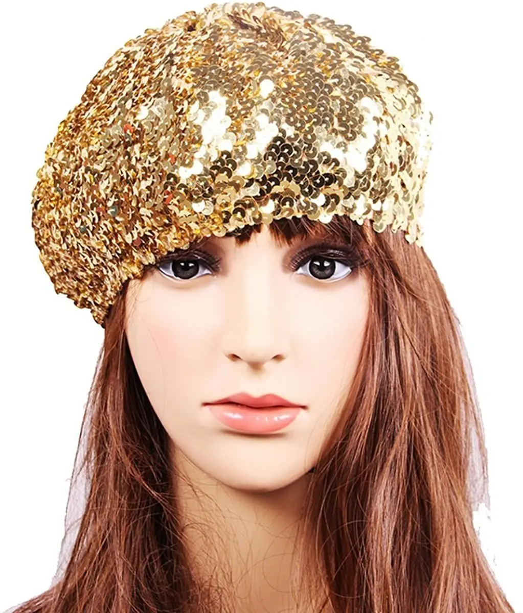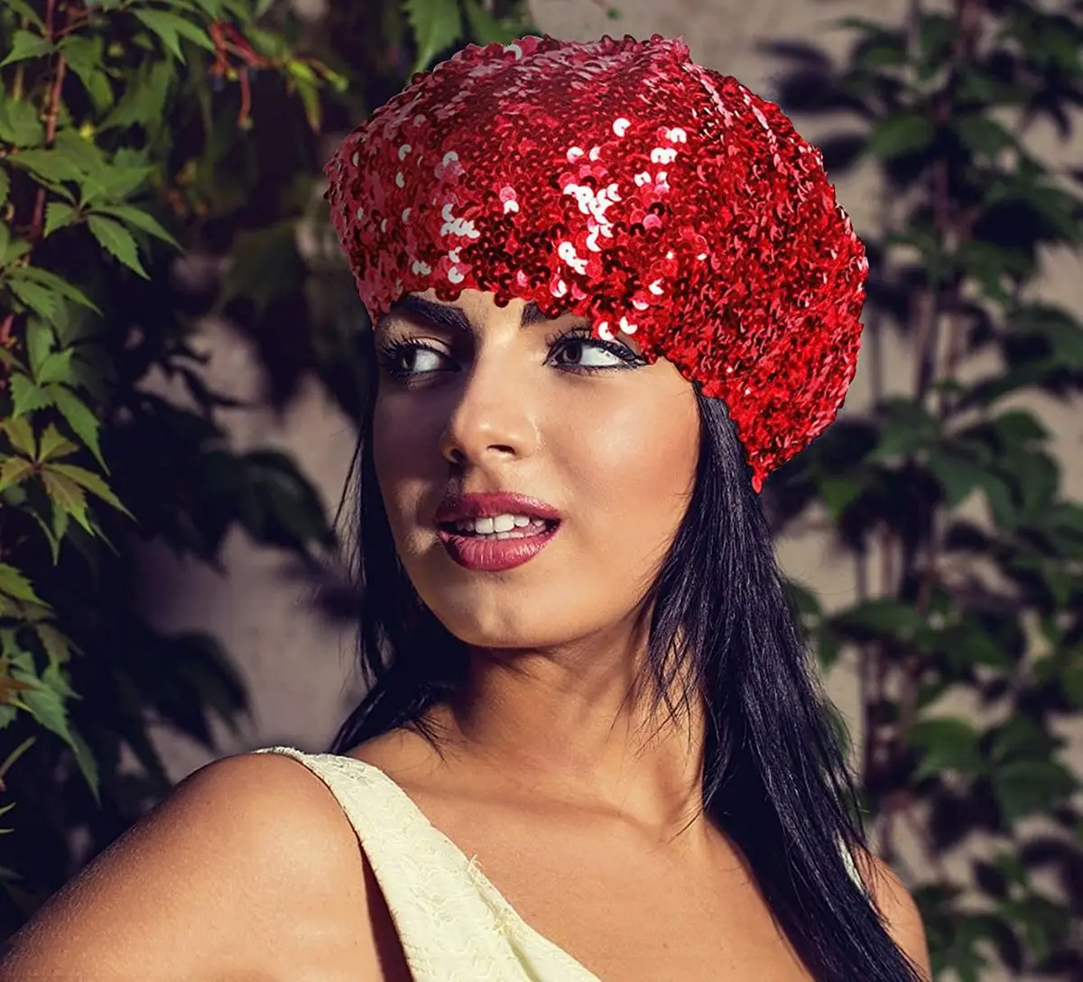 Женская модная Веселая блестящие пайетки мерцание стрейч берет шапка бини