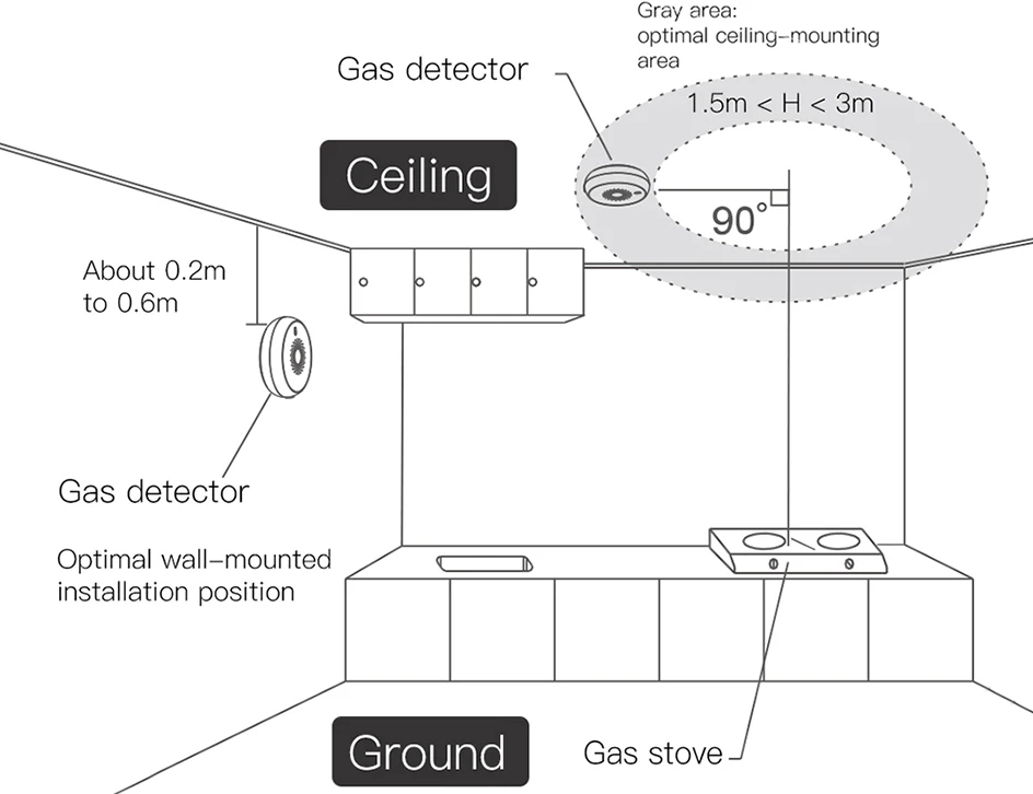 Диапазон измерения составляет 0%-100% л. Как только плотность сигнала тревоги не будет в диапазоне 8% LEL (природный газ), детектор выдаст сигнал тревоги 70 дБ и автоматически уведомит ваше приложение.