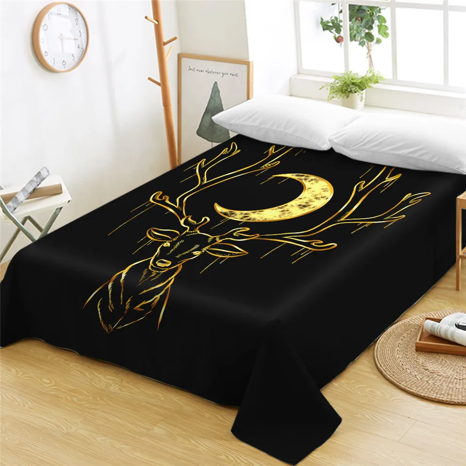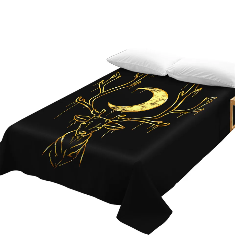 Олень от Taemin Ankh простыня Роскошная плоская простыня черный золотой покрывала королева 1 шт. животное с Луной drap de lit Прямая поставка
