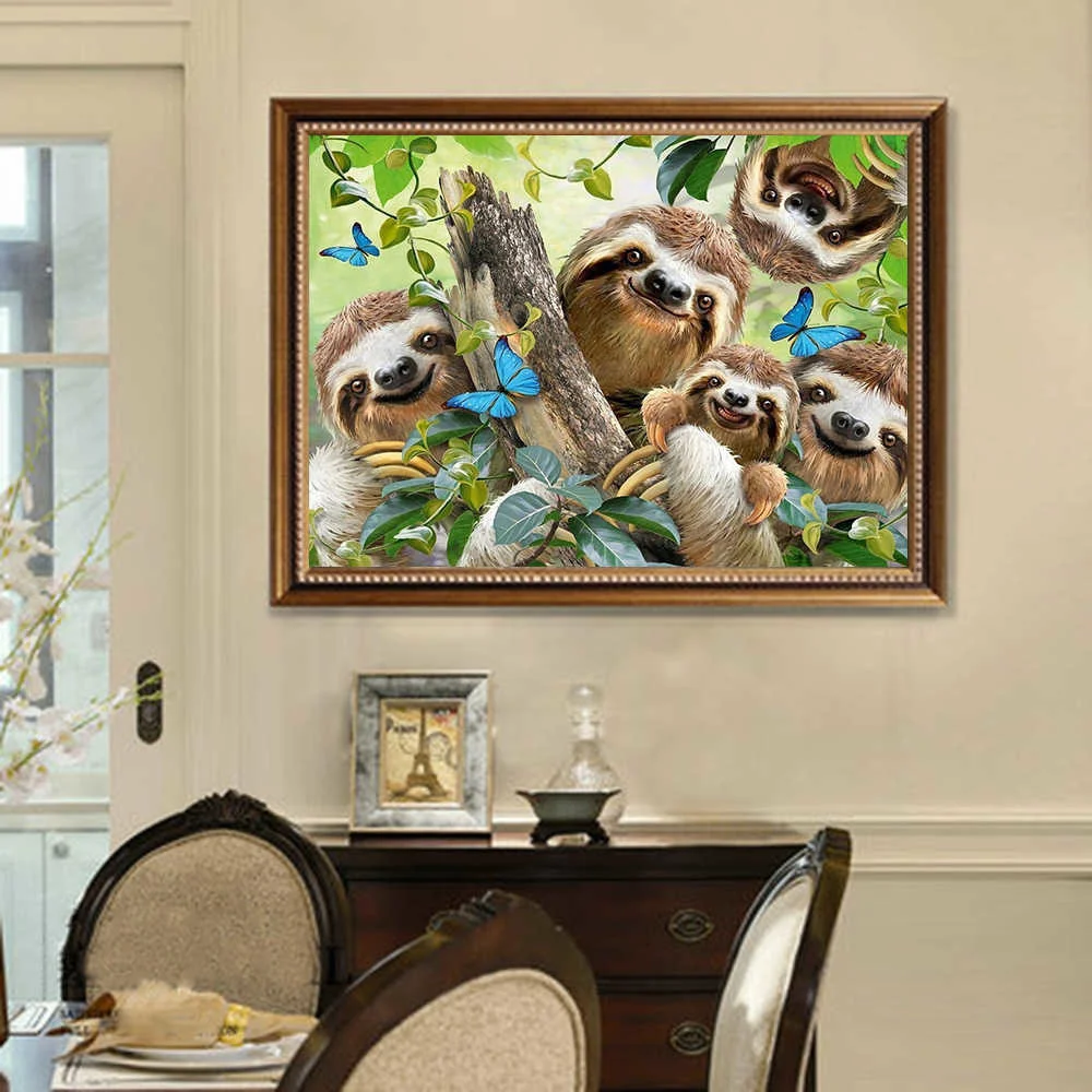 Алмазная живопись HUACAN, животное Ленивец, вышивка крестиком, Настенный декор, алмазная вышивка, украшение джунглей для дома