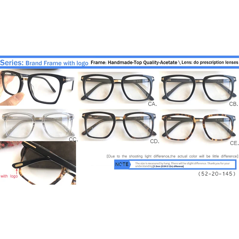 Очки IVSTA TF5523 мужские оверсайз с логотипом, высококачественные Брендовые очки из ацетата, большие квадратные очки по рецепту, в коробке