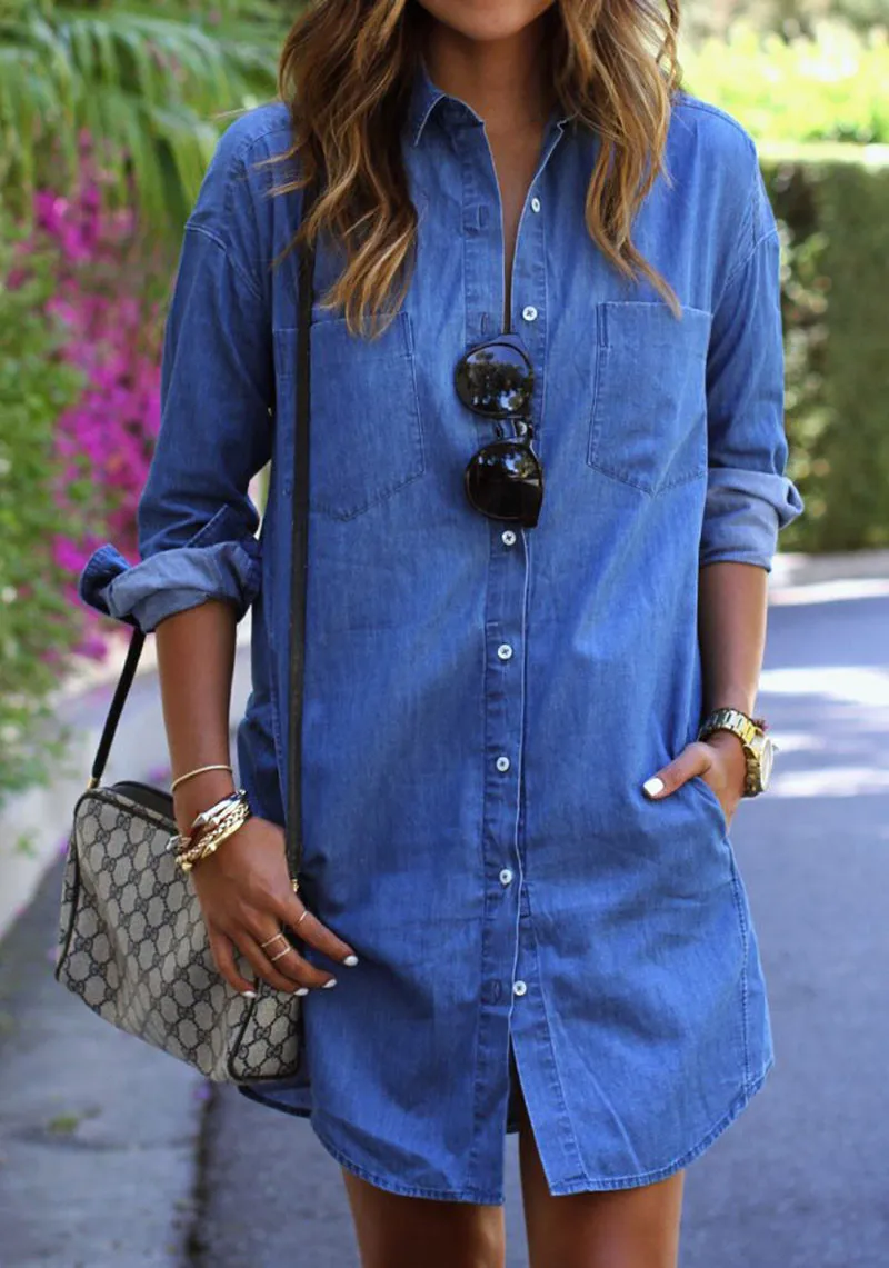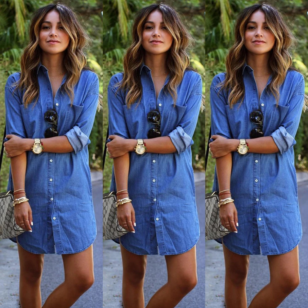 Платье женское джинсовое на пуговицах, Повседневная мини-рубашка с длинным рукавом, пляжная одежда, накидка на бикини, на лето