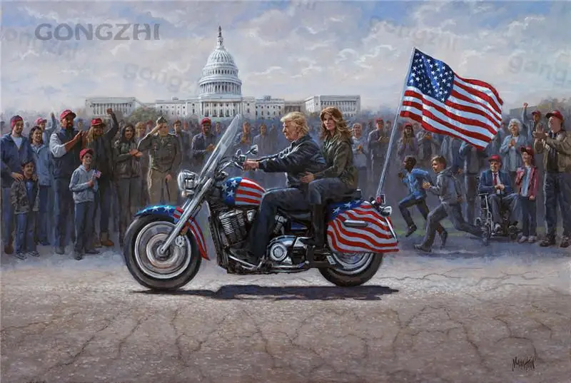 Настенный плакат American Ace, Картина на холсте с изображением Трампа, езды на мотоцикле, Модульная картина для гостиной, украшение для дома