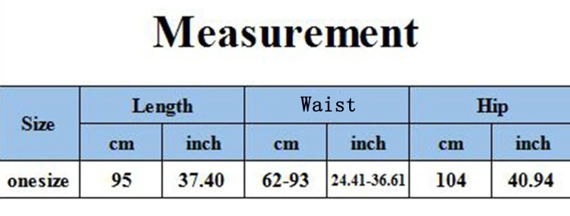 РазмерыДлина/СмТалия/смБедра/смОдин размер9562-93104