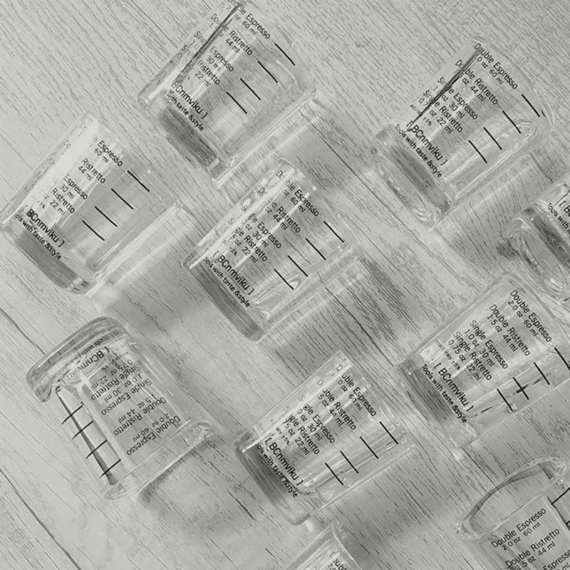 Квадратная чашка для эспрессо со шкалой, утолщенная стеклянная чашка 60 мл, чашка для унций, градуированная мерная чашка для кофе, инструменты для выпечки, посуда для напитков