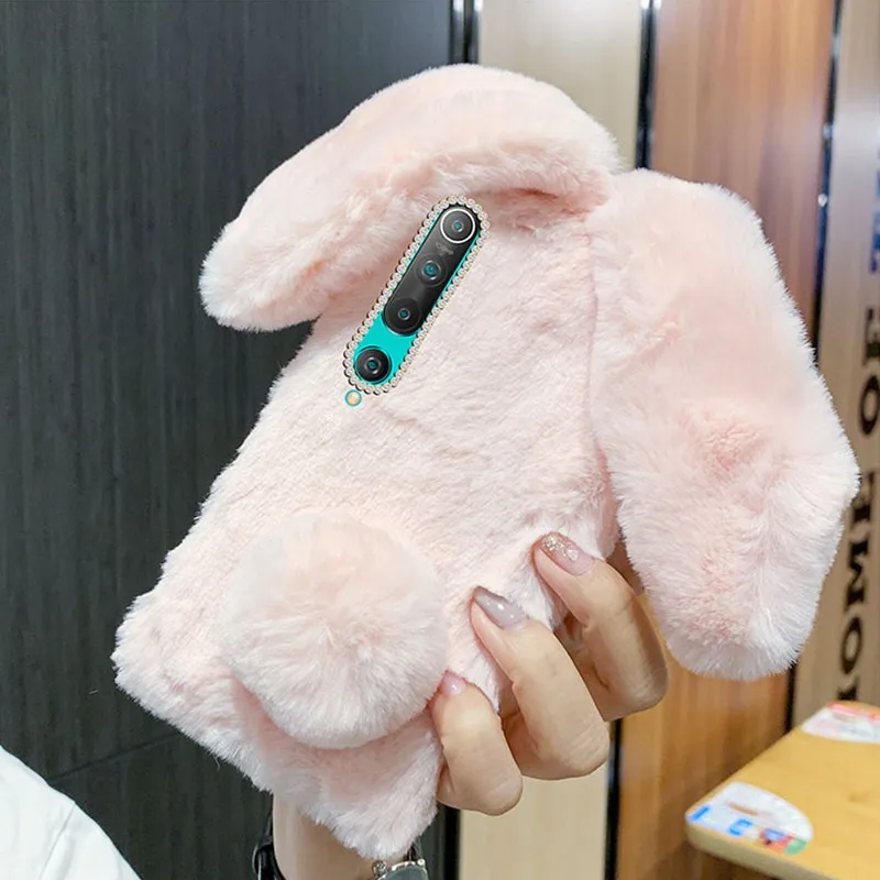 Чехол для телефона с пушистым кроликом для Xiaomi Mi 10 Ultra 10T 5G 9 Lite POCO X3 NFC Redmi 9A 9C 8A 7A 6A Note 6 7 8 Pro 8T 9S, Меховой чехол