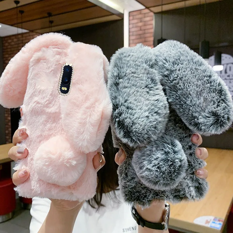 Милый плюшевый чехол с кроличьими ушками для OPPO Realme C17 C15 C1...
