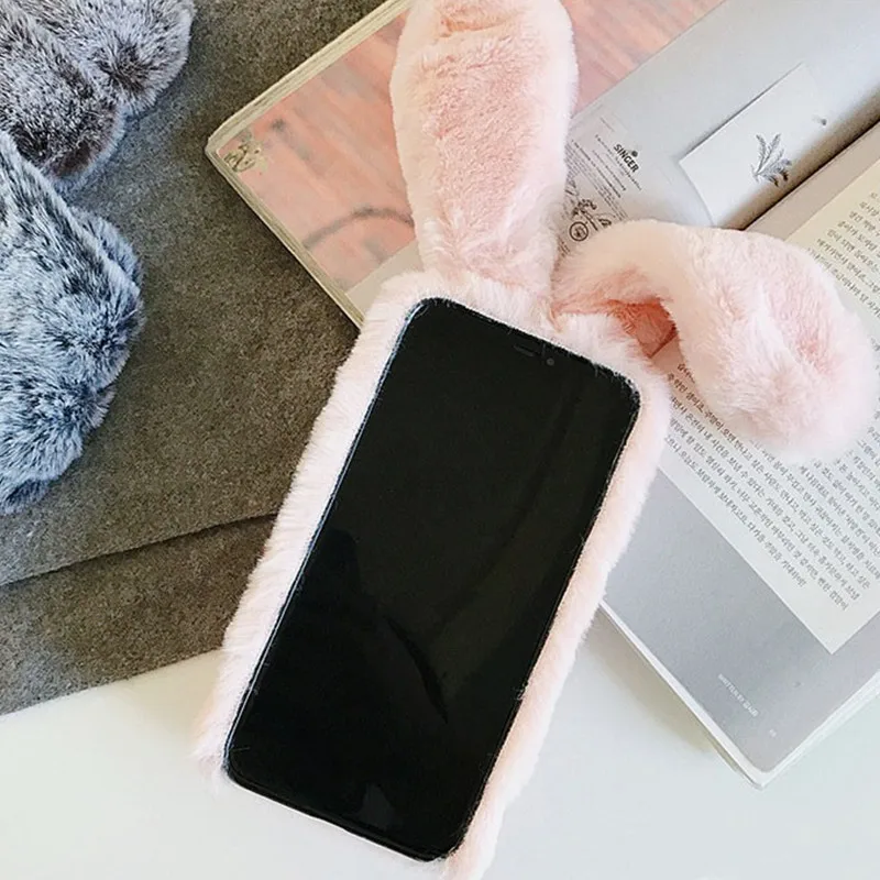 ХарактеристикиCute Warm Rabbit Ears Fluffy Fur Soft Phone Case Cover