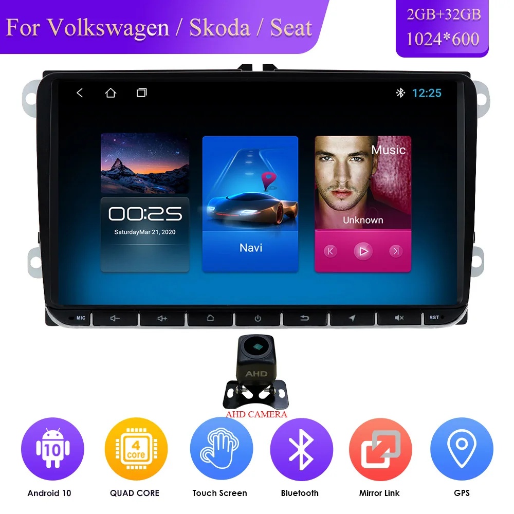 Автомагнитола 2 Din, Android 10, мультимедиа, GPS, для Volkswagen, Skoda Octavia, golf 5, 6, touran, passat B6, polo, tiguan, yeti, 4G, Wi-Fi