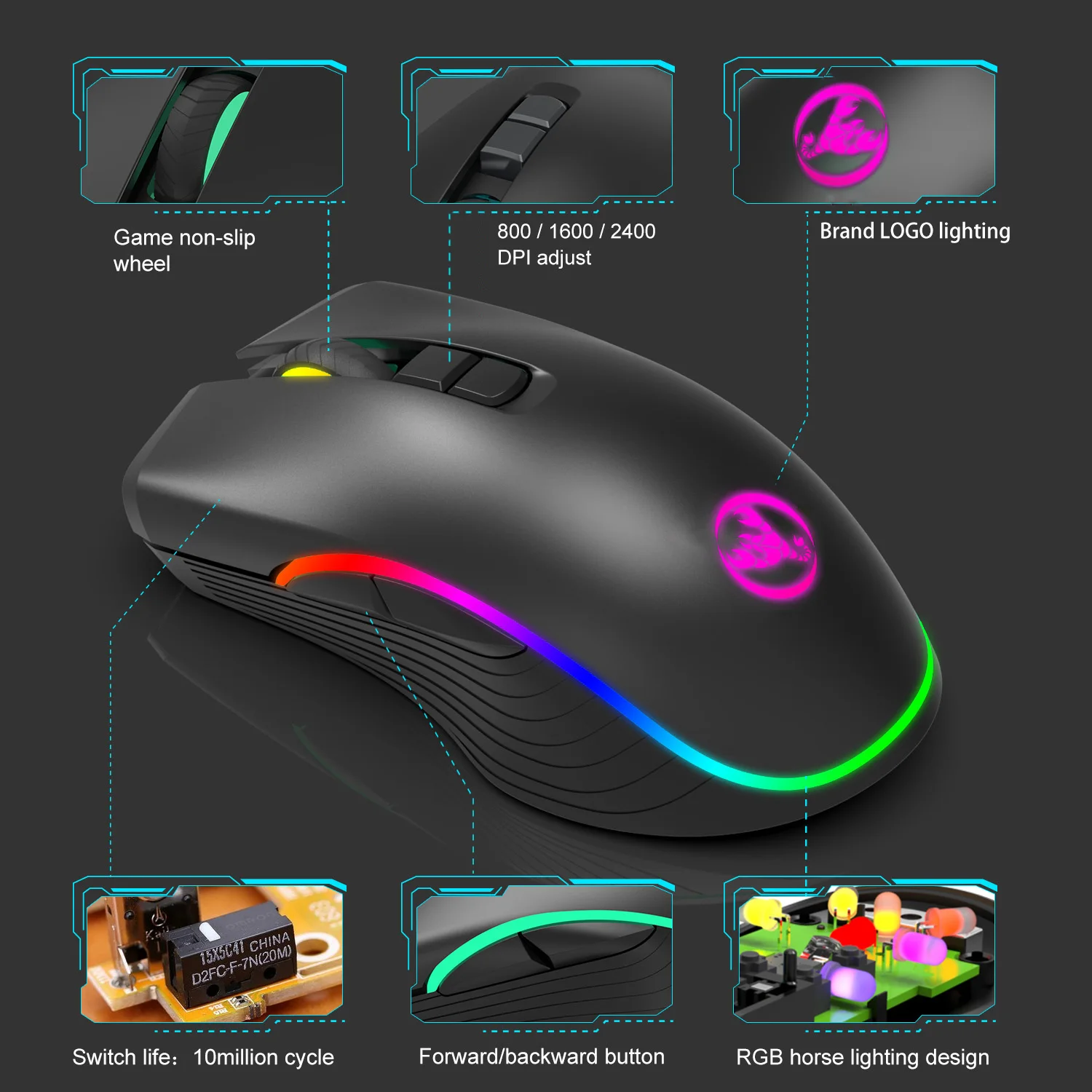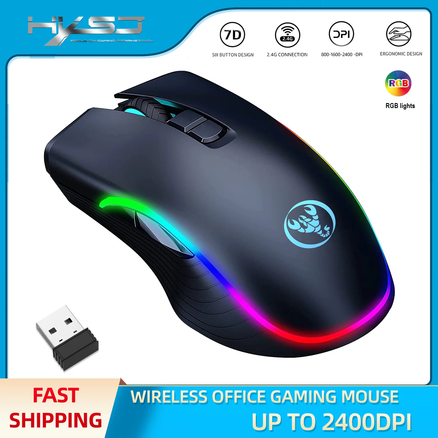 HXSJ Новый 2,4G беспроводная мышь RGB Световой TYPE-C зарядки черный ноутбук ПК игровые компьютерные аксессуары