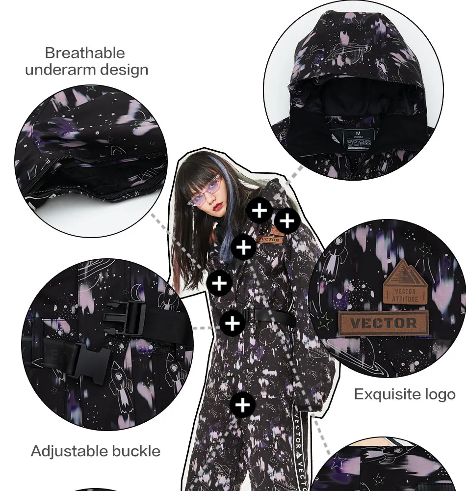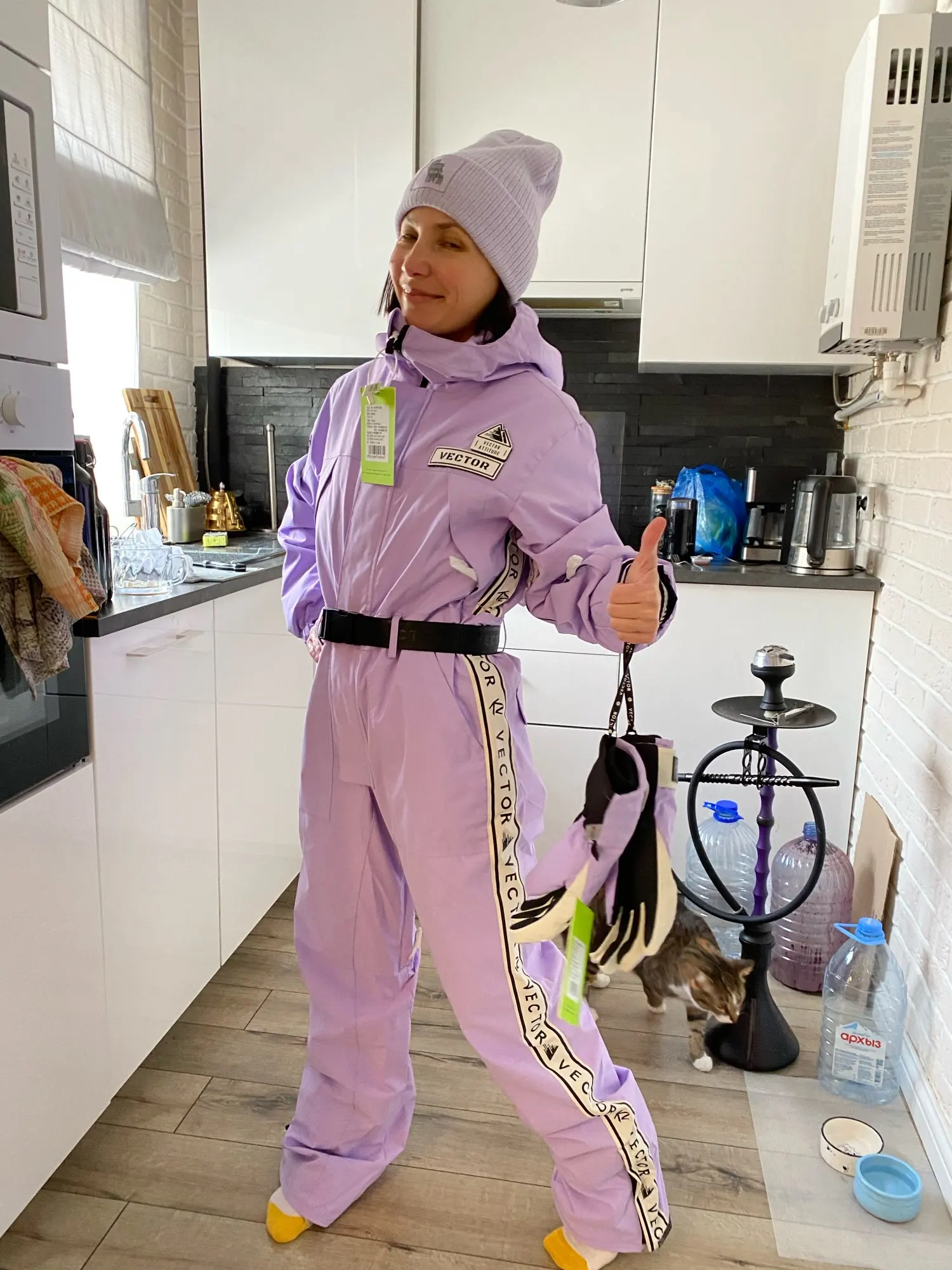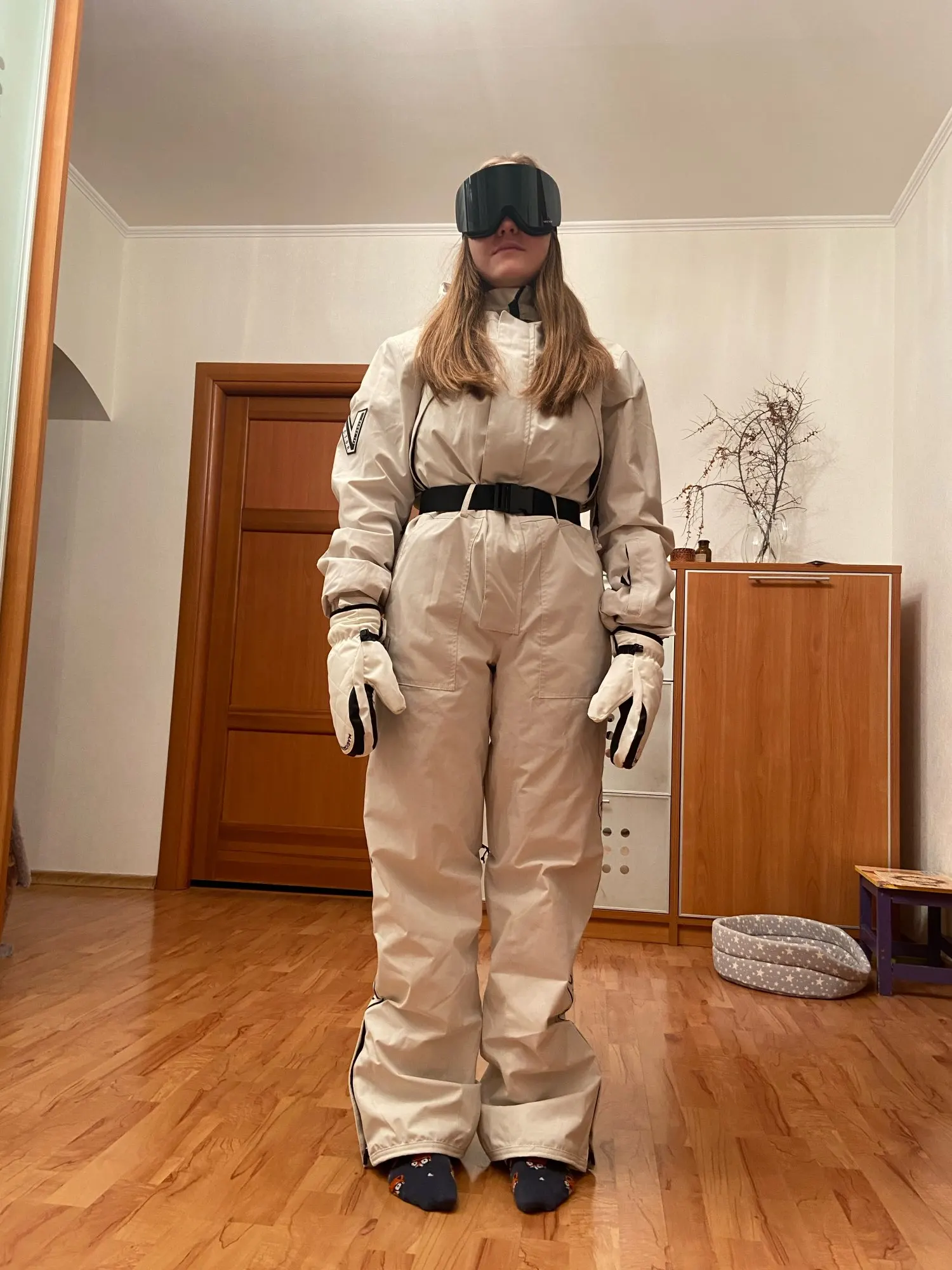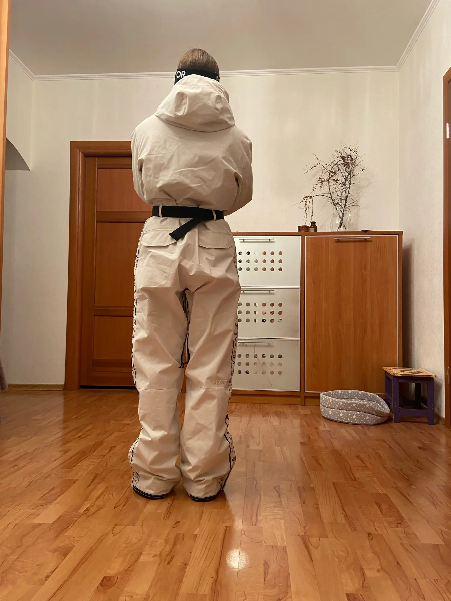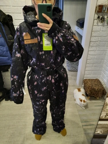Комбинезон отличный. Для активного катания, не для медленных прогулок!!! Достаточно продуман, много карманов, молнии для вентиляции подмышками и в паху. В карманах на бёдрах есть шнурки, чтобы подтянуть штанины. Крючки на юбках штанин для крепления к ботинкам. Внутренний карман для маски. Очень большемерит, на параметры 90-78-102 , рост 161 взяла размер s. Не обтягивает. Внизу три слоя: влагоотводящее, тонкий флис и толстый флис. Плотные леггинсы . При морозе -17 в метель на горе не замёрзла, на открытых подъемниках было прохладно. Фото вблизи позже.