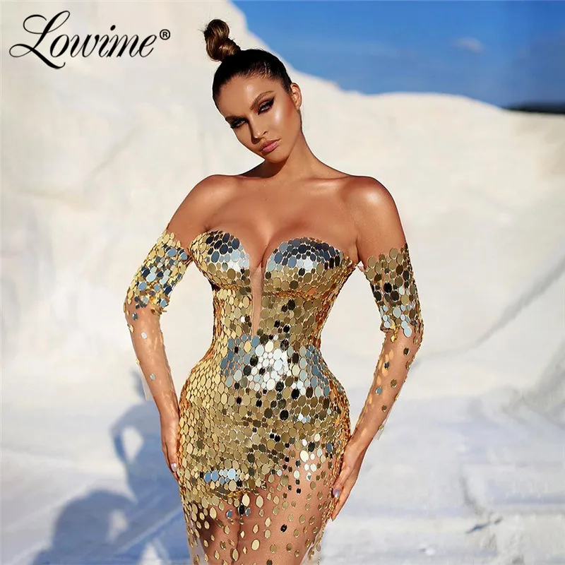 Золотыми кристаллами Платья для вечеринок 2021 Couture лодыжки Длина Арабский Дубай вечернее платье африканские платья для выпускного вечера, прозрачные, комплект вечерней одежды для одежды