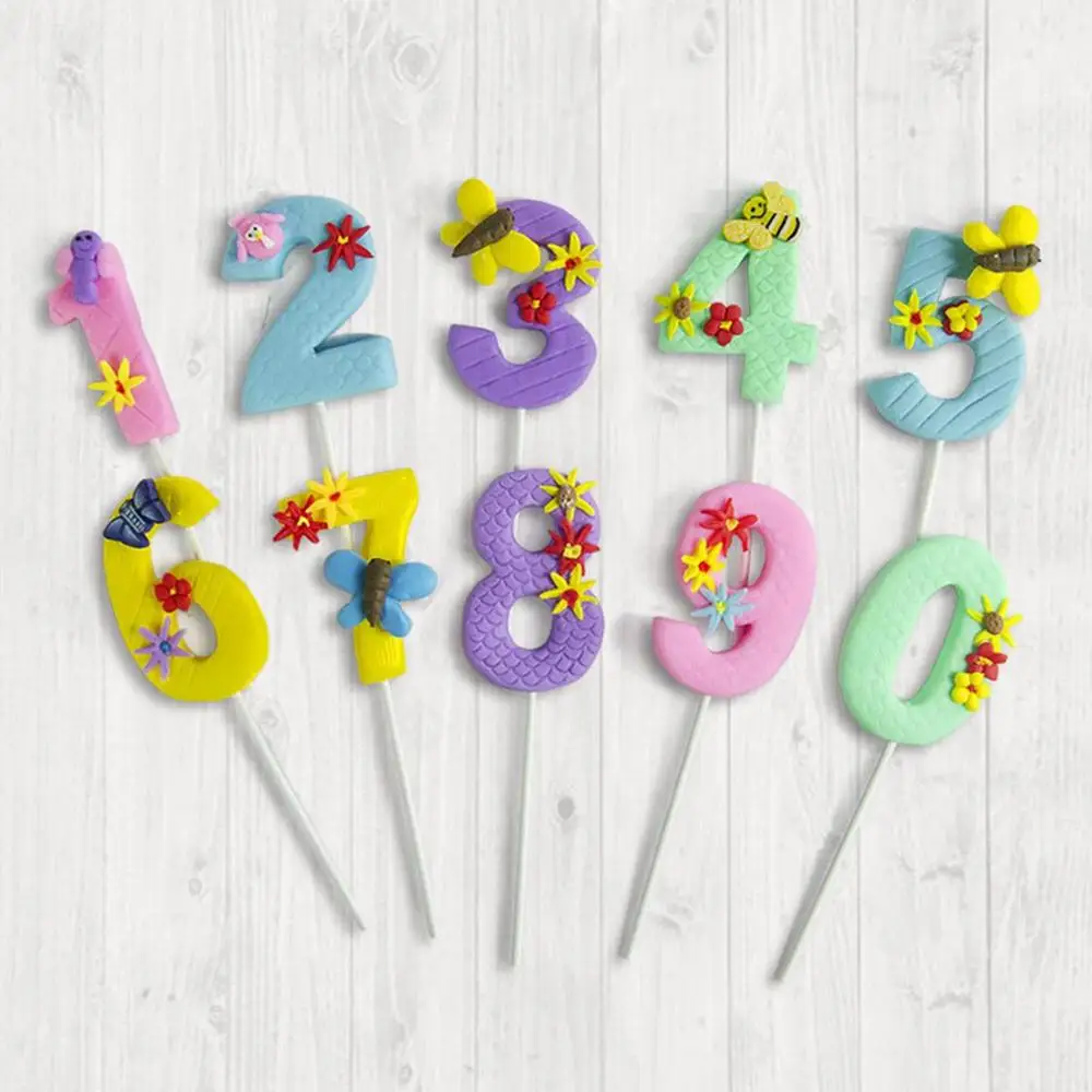 Топпер для торта из мягкой глины в виде цифр, украшения для первого...
