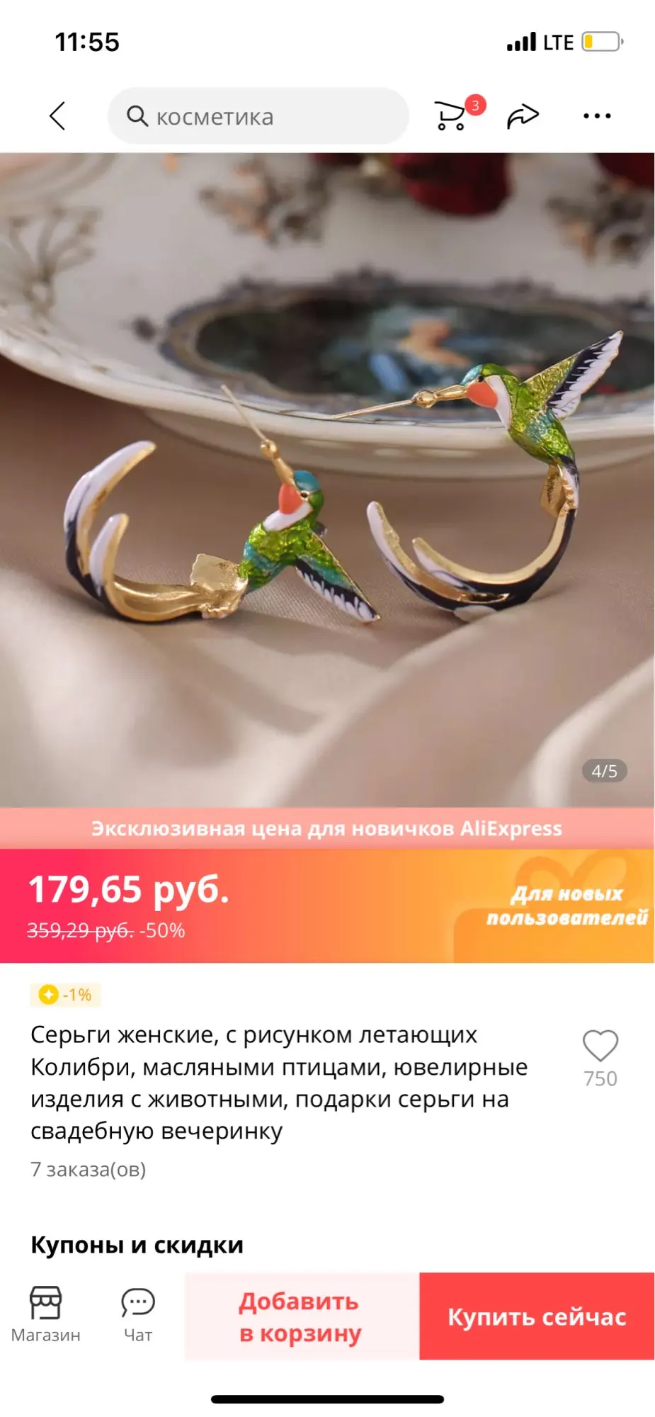 Женские серьги с рисунком Колибри, серьги с рисунком, Ювелирное Укр...