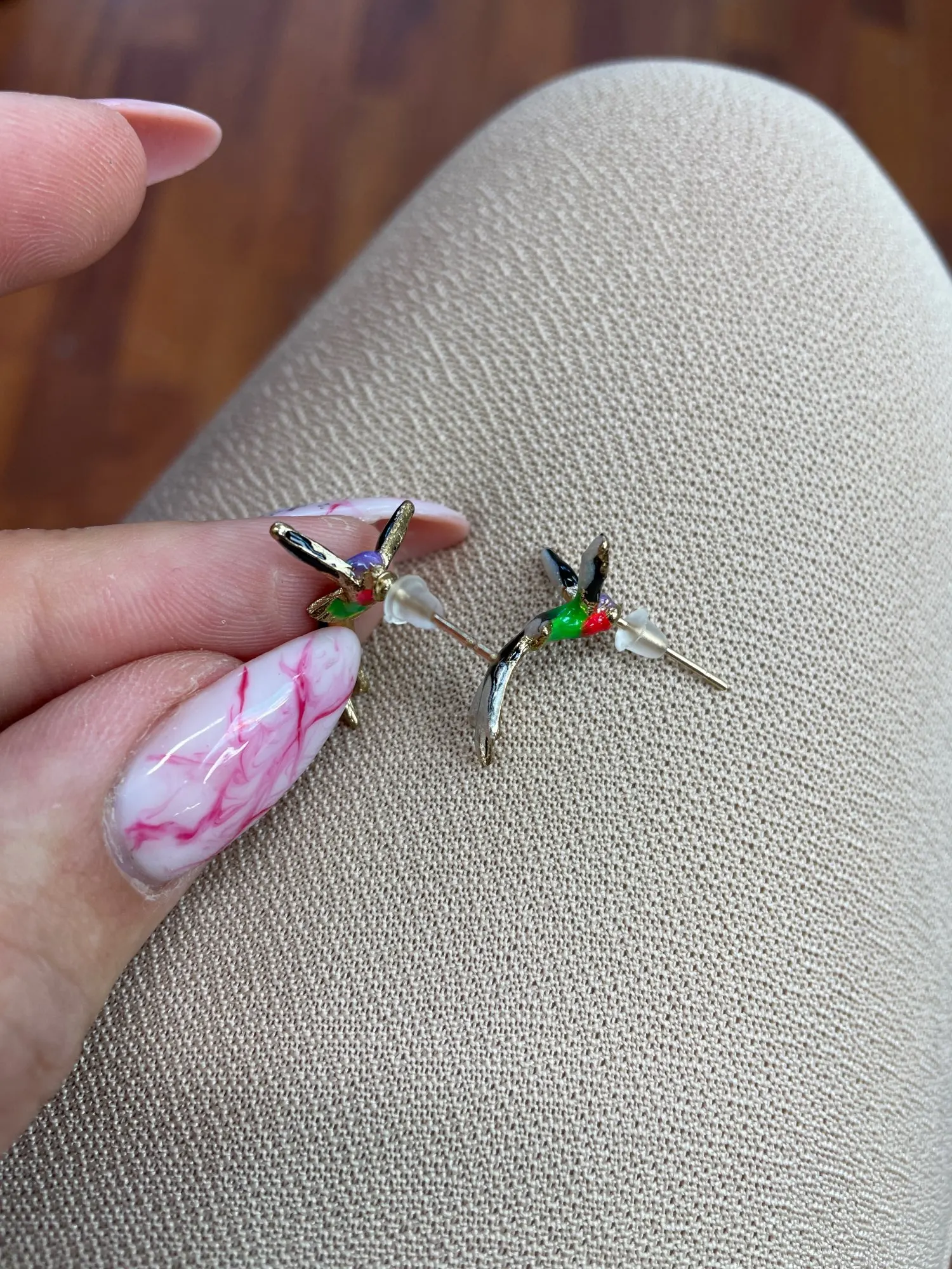 Серьги-гвоздики женские, с рисунком летящей Колибри, Рождественский...