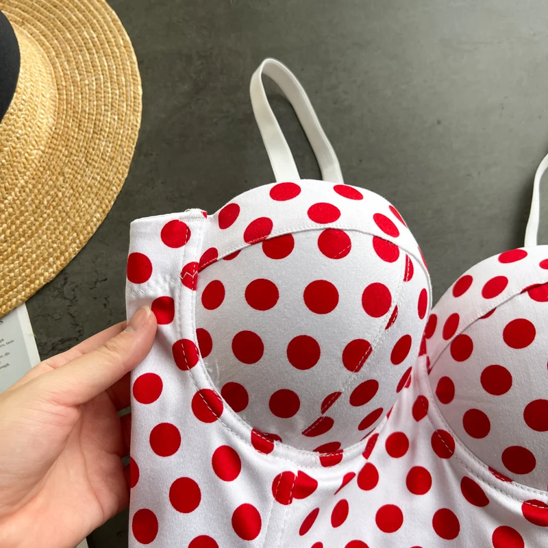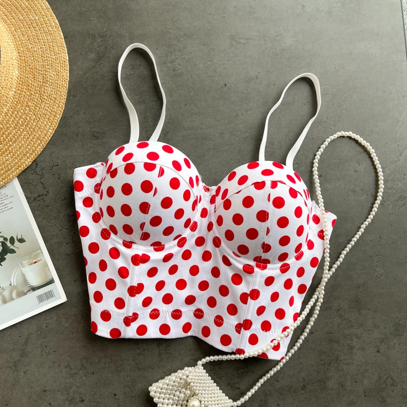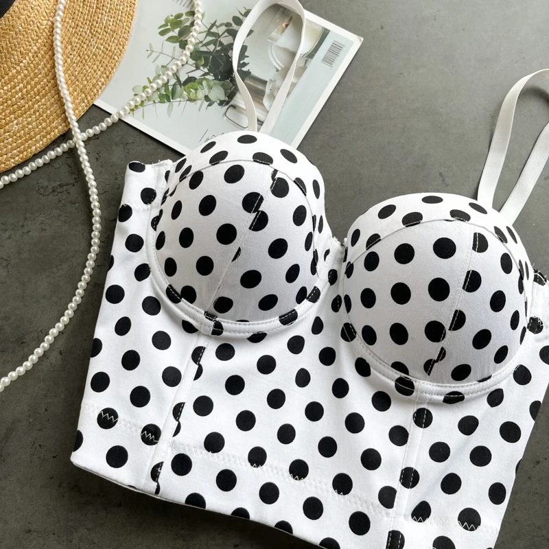 Топ женский укороченный в горошек, модный топ-бюстье с присборенными чашечками, в стиле ретро, для ночных клубов и вечеринок, Y476, 2021