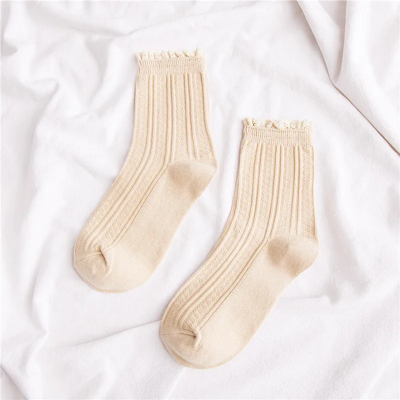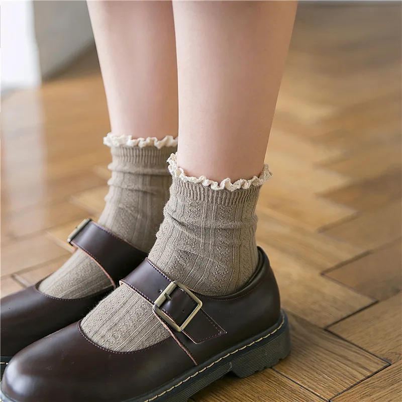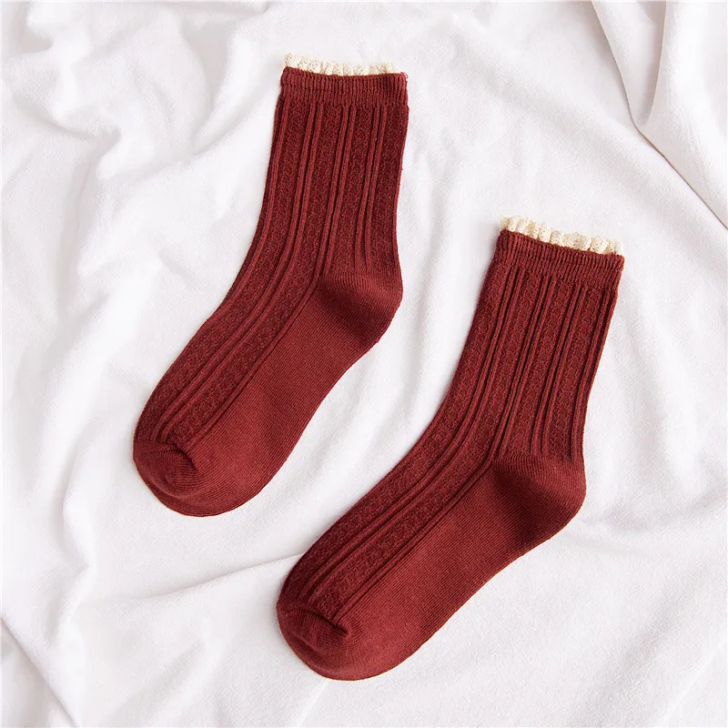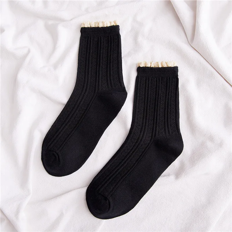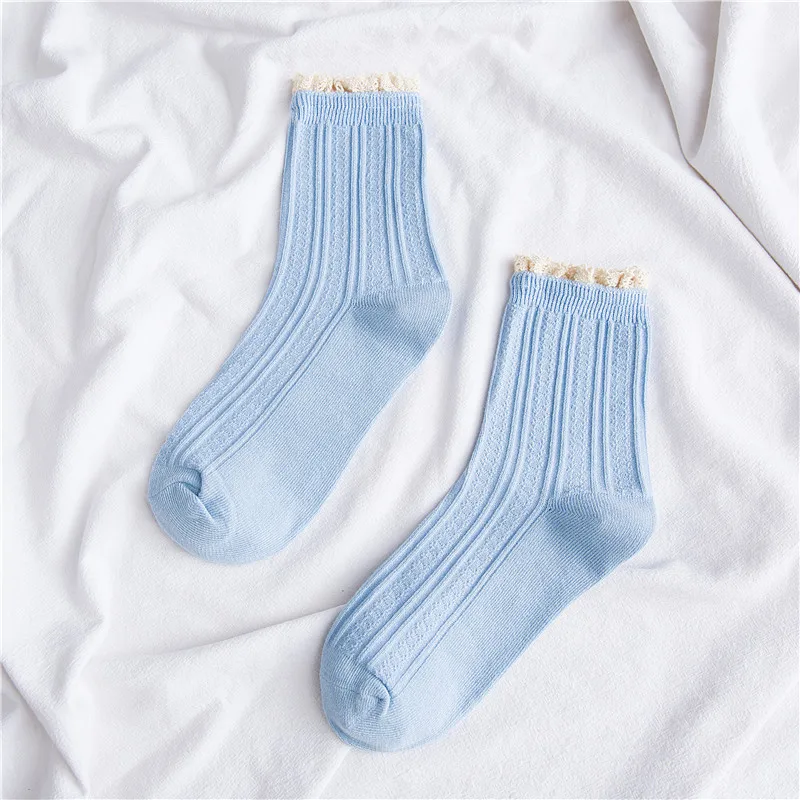 Jeseca новые милые женские кружевные длинные носки из хлопка с рюшами, мягкое дышащее теплое зимнее нижнее белье для девочекЦвет: белый, розовый, черный, желтый, винно-красный, кофейный, бежевый, синийРазмер: женский свободный размерСезон: весна, осень, зима