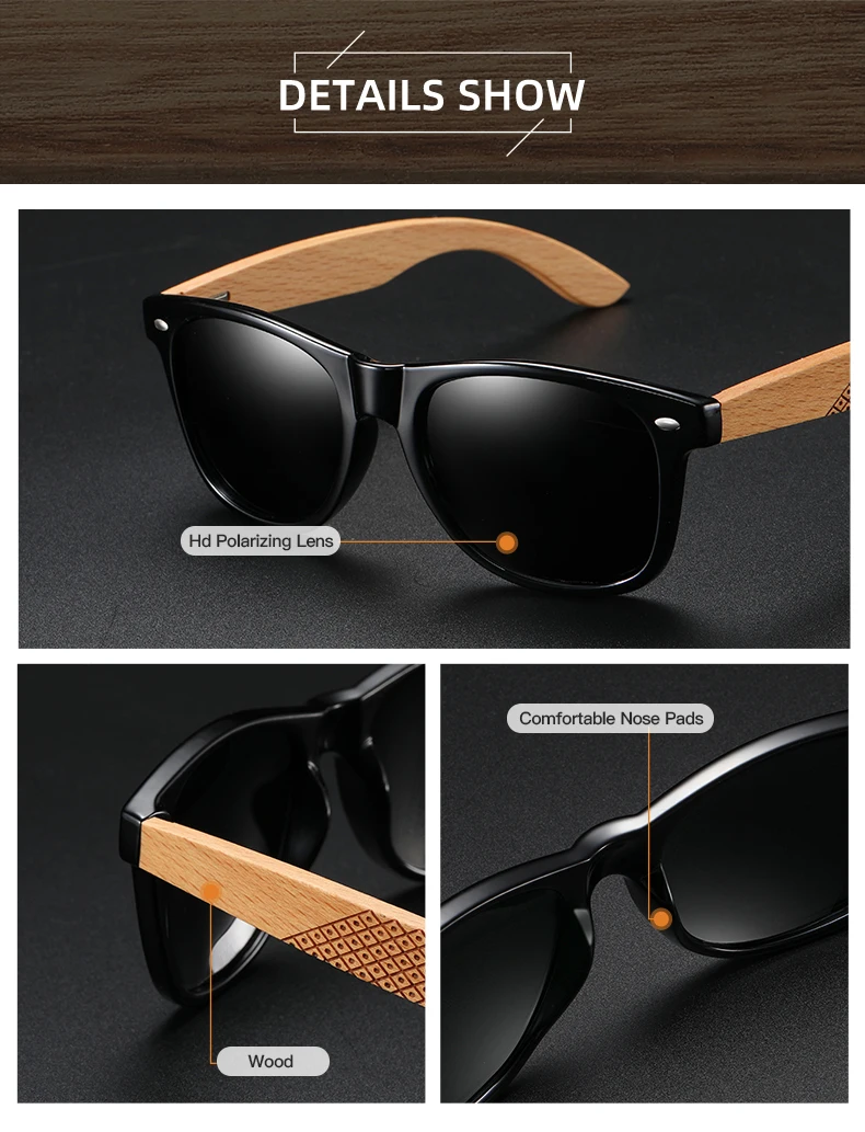 Очки солнцезащитные с деревянными дужками и поляризацией, S7062