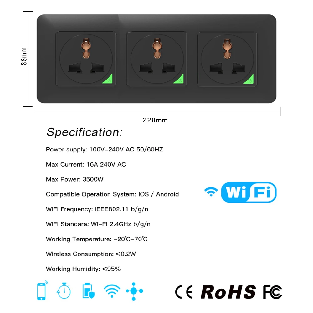 Универсальная умная настенная розетка с таймером и поддержкой Wi-Fi...