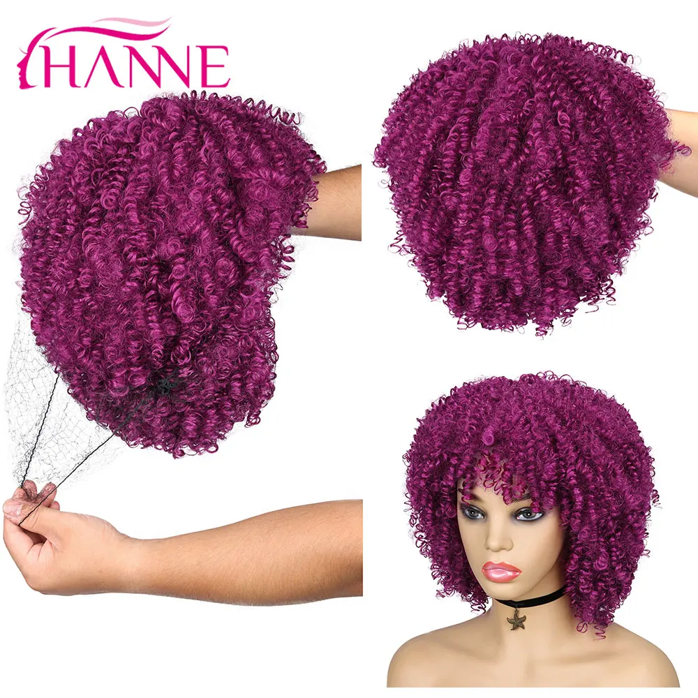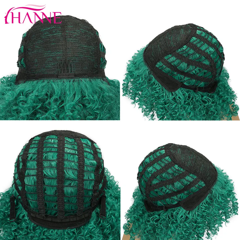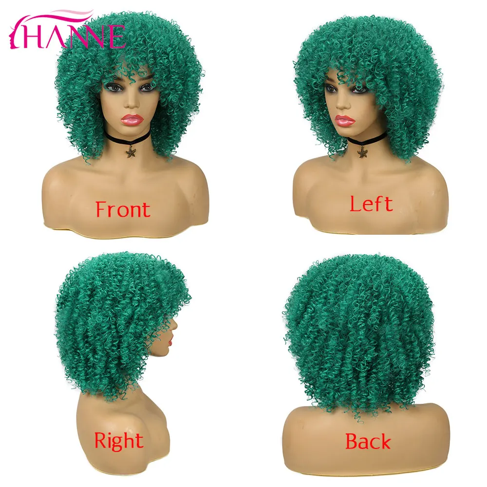 Короткие кудрявые синтетические парики HANNE, с бесплатной челкой, зеленыечерныефиолетовыекрасные парики для чернокожих женщин, косплей или вечерние парики