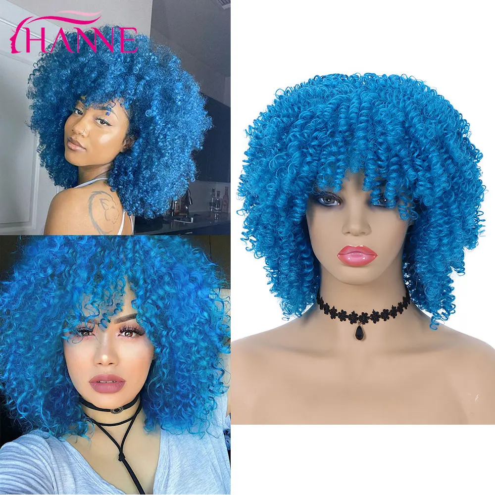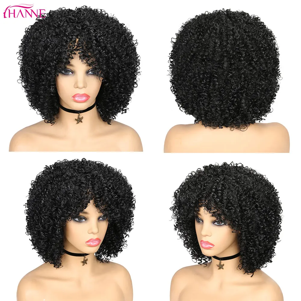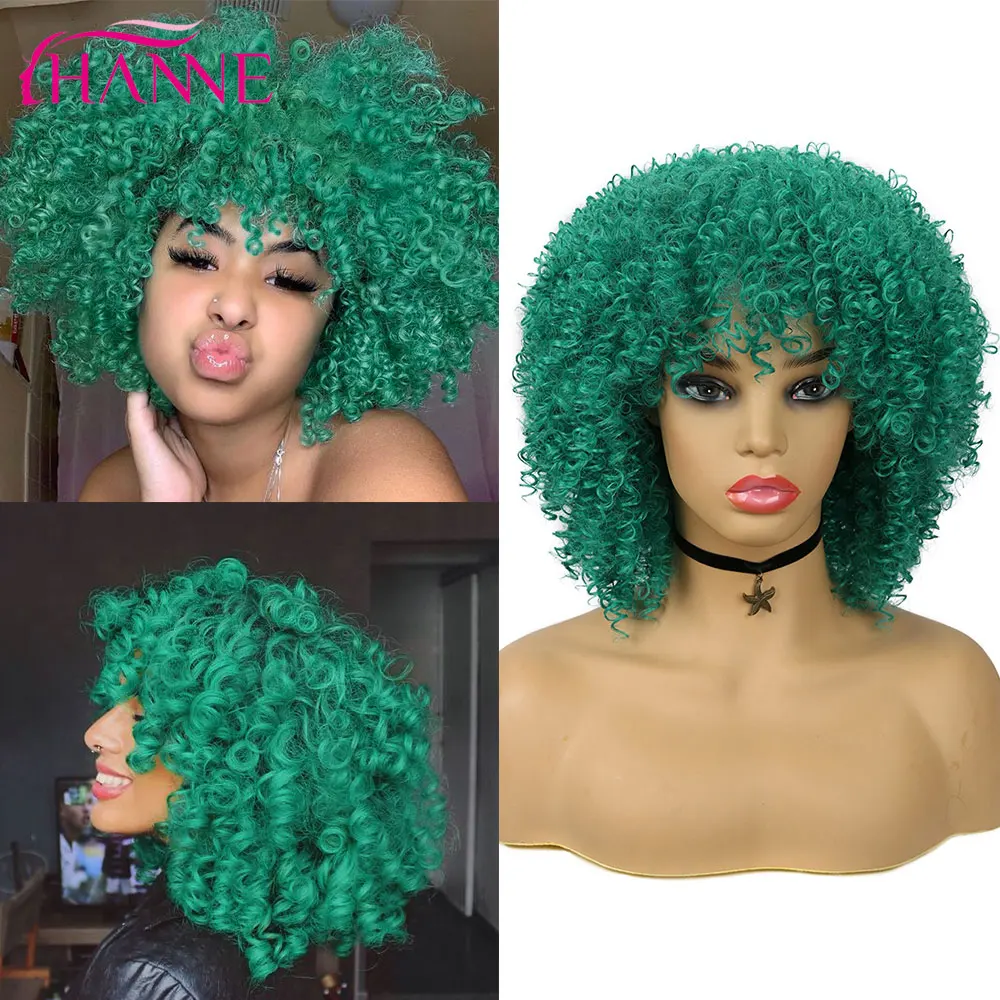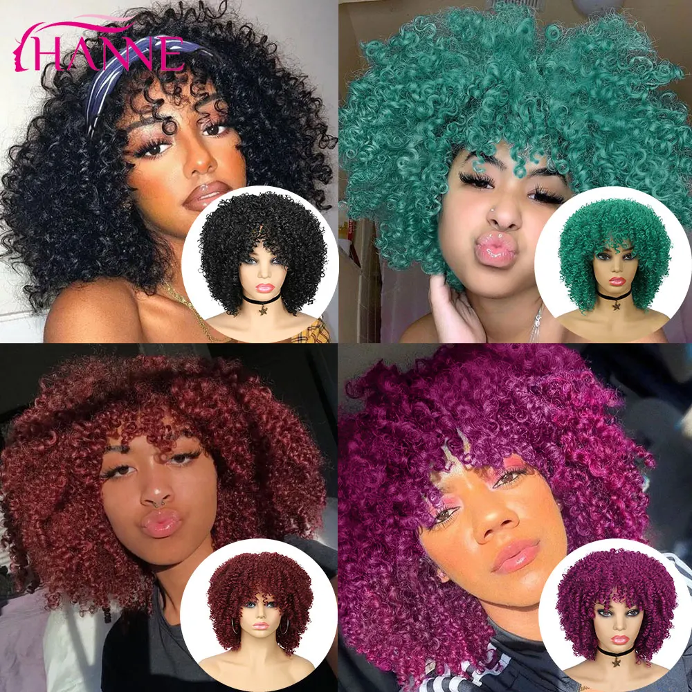 Короткие кудрявые синтетические парики HANNE, с бесплатной челкой, зеленыечерныефиолетовыекрасные парики для чернокожих женщин, косплей или вечерние парики