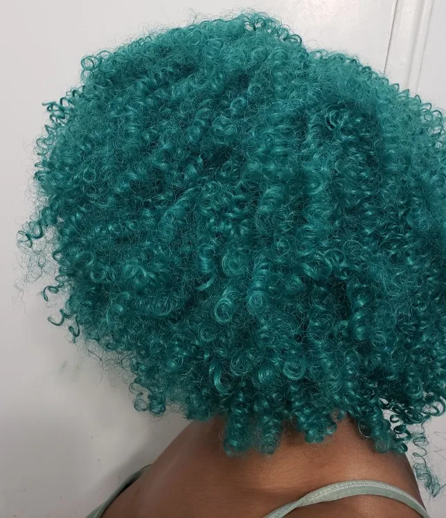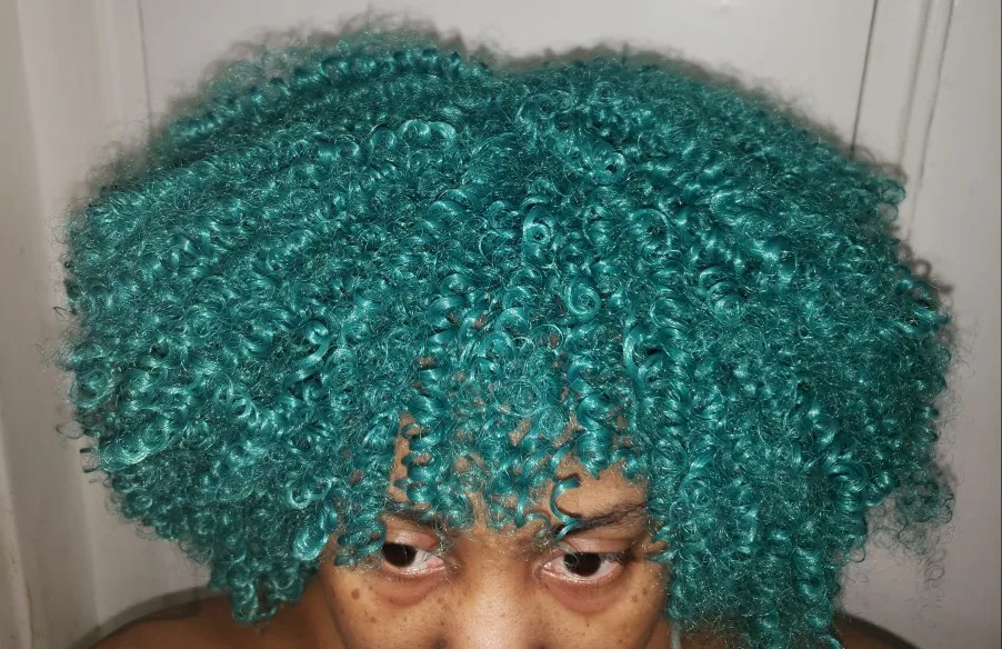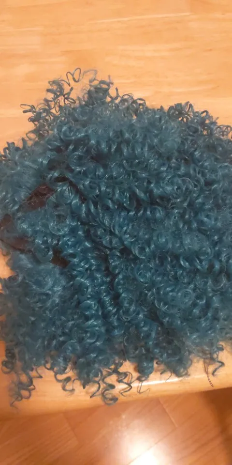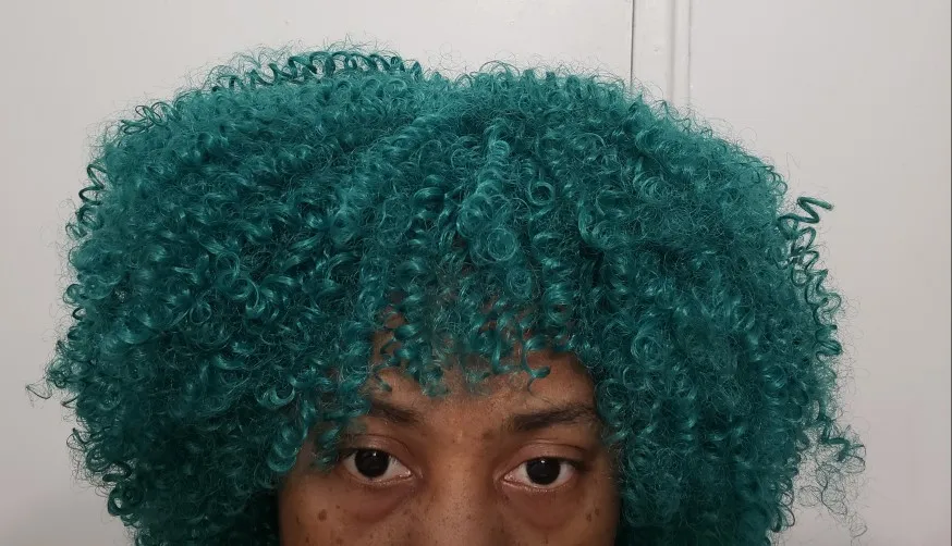Я был так рад наконец найти плотно скрученный зеленый парик. К сожалению, этот парик не зеленый. Определенно синий/бирюзовый. Завиток приятный. Это не мило, но может быть стильным. Я не буду использовать, так как мне действительно нужен зеленый парик.