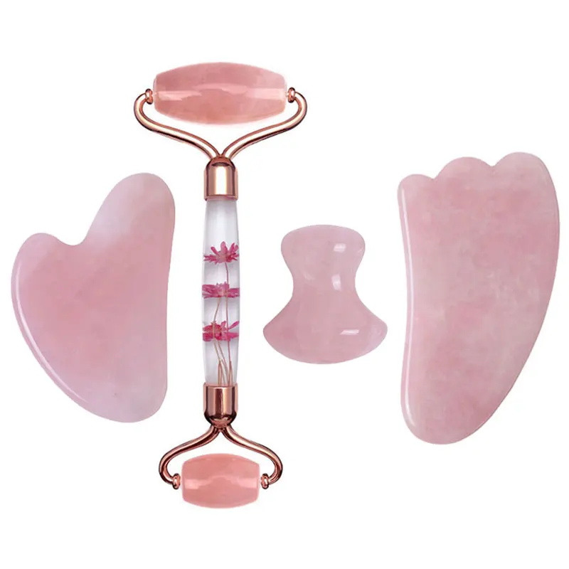 Новый розовый кварц гуашь скребок лицо нефрит для массажа роликовый набор натуральный гуашь камень ролик для лица нефритовый массажер Gua sha скребок