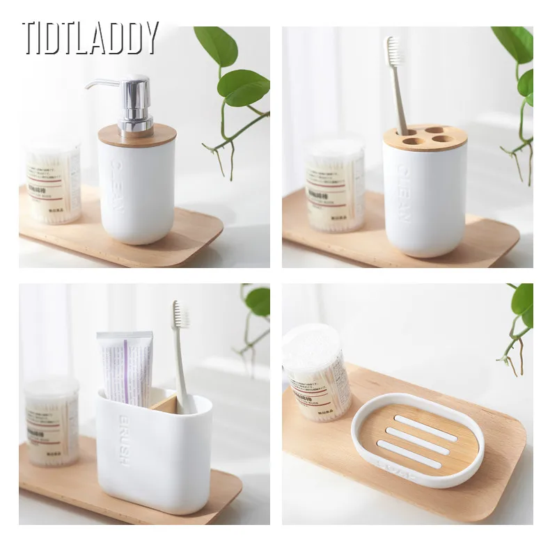 Набор для ванной комнаты, держатель для зубных щеток, подстаканник для туалетных щеток, держатель для мыла, пресс, эмульсионный дозатор, контейнер, бамбуковые аксессуары для ванной комнаты