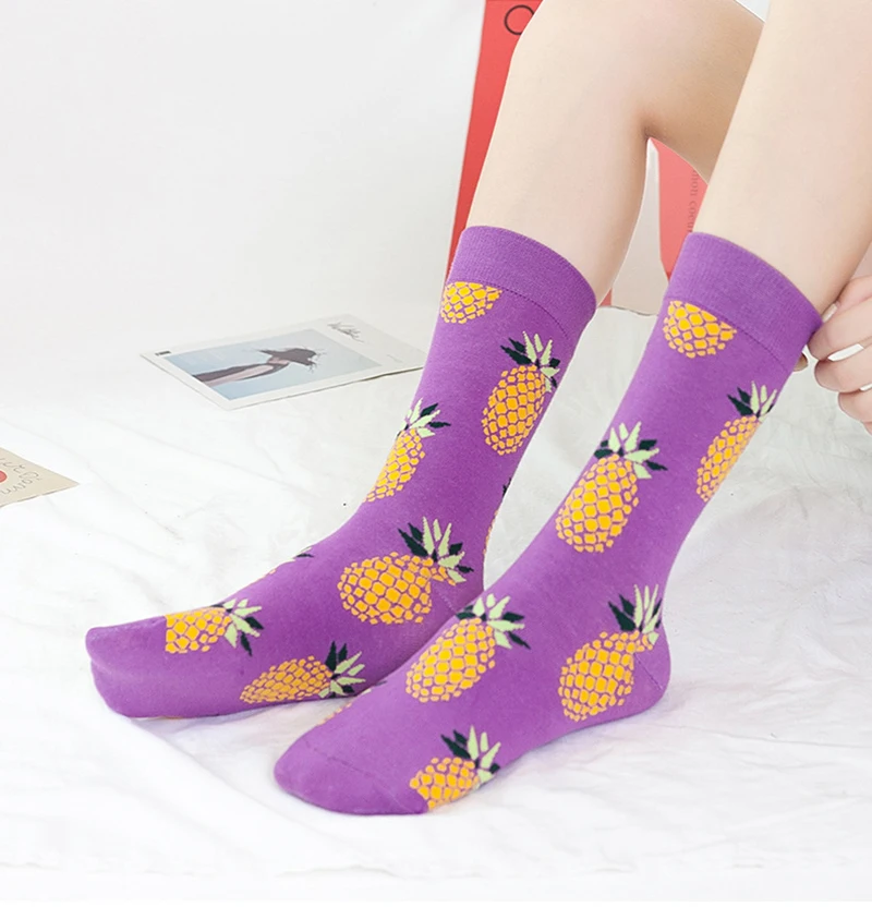 Чулки женские в виде фруктов, женские носки средней длины, Красочны...