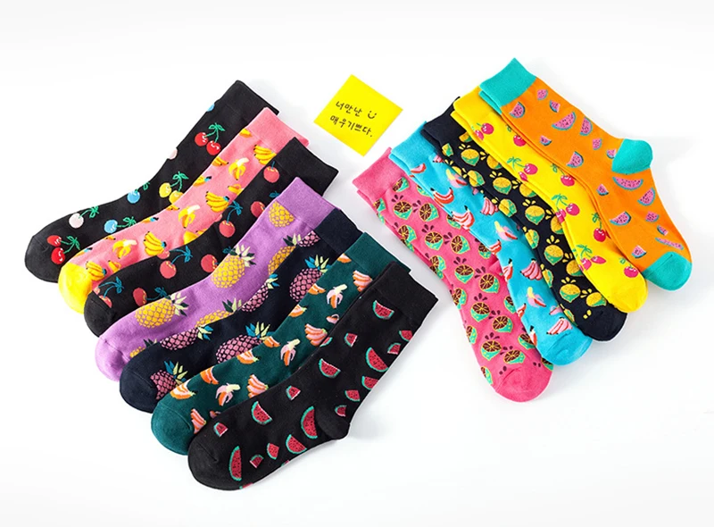 Счастливые носки, креативные индивидуальные носки в стиле Харадзюку с фруктами и животными, забавные носки унисекс на осень и зиму, высококачественные подарочные носки