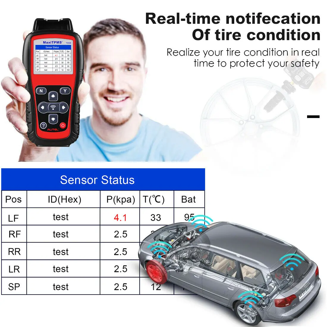 Features 4TPMS diagnose, one step for complete TPMS health check